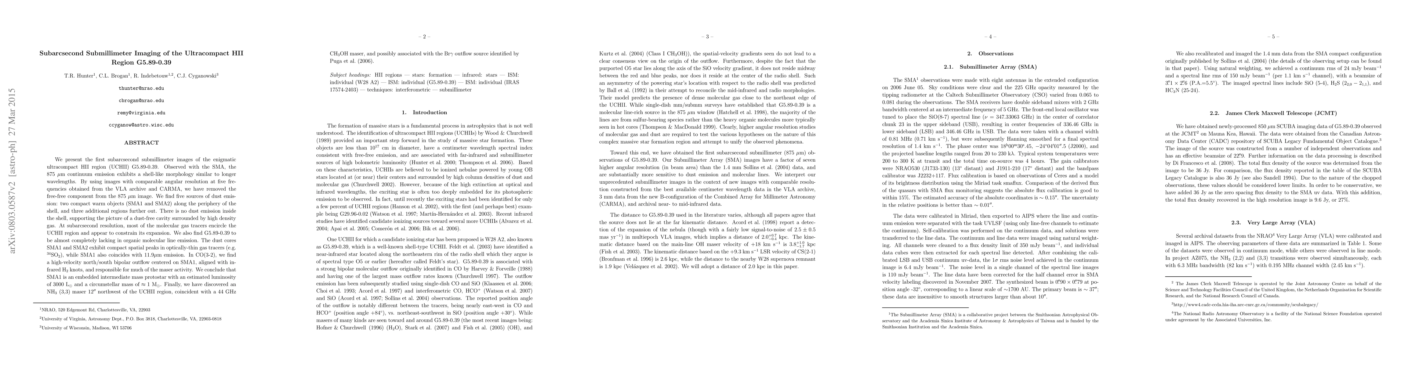 We present the first subarcsecond submillimeter images of the enigmatic ultracompact HII region (UCHII) G5.89-0.39. Observed with the SMA, the 875 micron continuum emission exhibits a shell-like morphology similar to longer wavelengths. By using images with comparable angular resolution at five frequencies obtained from the VLA archive and CARMA, we have removed the free-free component from the 875 micron image. We find five sources of dust emission: two compact warm objects (SMA1 and SMA2) along the periphery of the shell, and three additional regions further out. There is no dust emission inside the shell, supporting the picture of a dust-free cavity surrounded by high density gas. At subarcsecond resolution, most of the molecular gas tracers encircle the UCHII region and appear to constrain its expansion. We also find G5.89-0.39 to be almost completely lacking in organic molecular line emission. The dust cores SMA1 and SMA2 exhibit compact spatial peaks in optically-thin gas tracers (e.g. 34SO2), while SMA1 also coincides with 11.9 micron emission. In CO(3-2), we find a high-velocity north/south bipolar outflow centered on SMA1, aligned with infrared H2 knots, and responsible for much of the maser activity. We conclude that SMA1 is an embedded intermediate mass protostar with an estimated luminosity of 3000 Lsun and a circumstellar mass of ~1 Msun. Finally, we have discovered an NH3 (3,3) maser 12 arcsec northwest of the UCHII region, coincident with a 44 GHz CH3OH maser, and possibly associated with the Br gamma outflow source identified by Puga et al. (2006).