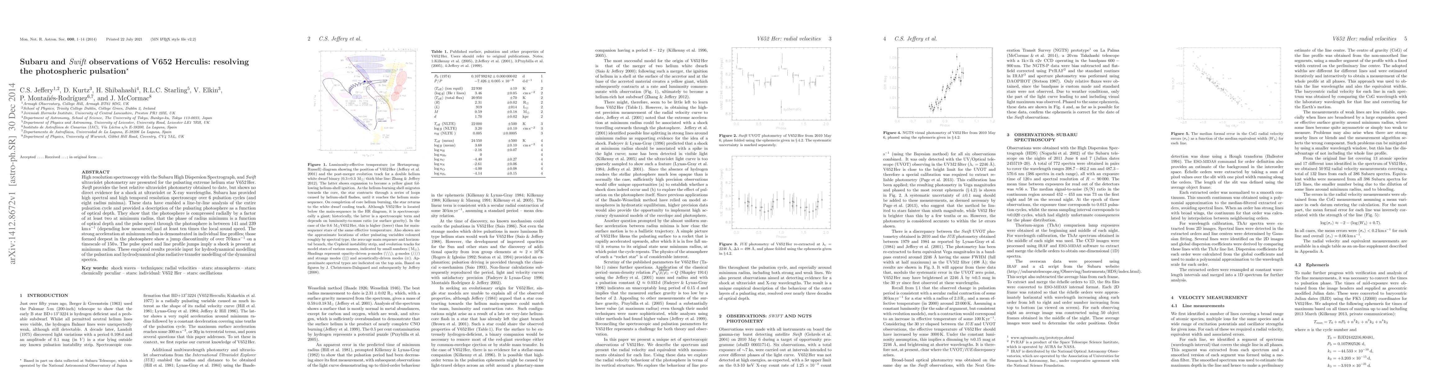 Researchers used Subaru spectroscopy and Swift ultraviolet photometry to study V652 Herculis, an extreme helium star with a pulsating photosphere. They found strong evidence of a shock at the minimum radius, with pulse speeds up to 10 times the local sound speed.