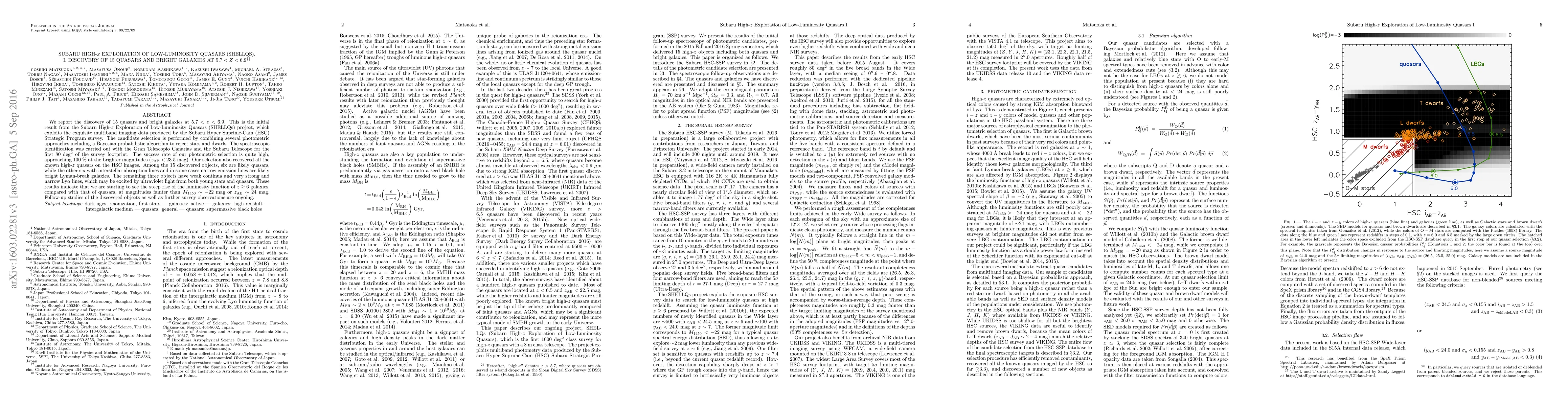 The Subaru High-z Exploration of Low-Luminosity Quasars (SHELLQs) project has discovered 15 quasars and bright galaxies at redshifts 5.7 < z < 6.9 using the Subaru Hyper Suprime-Cam survey. The high success rate of photometric selection indicates a steep rise in the luminosity function of z > 6 galaxies.