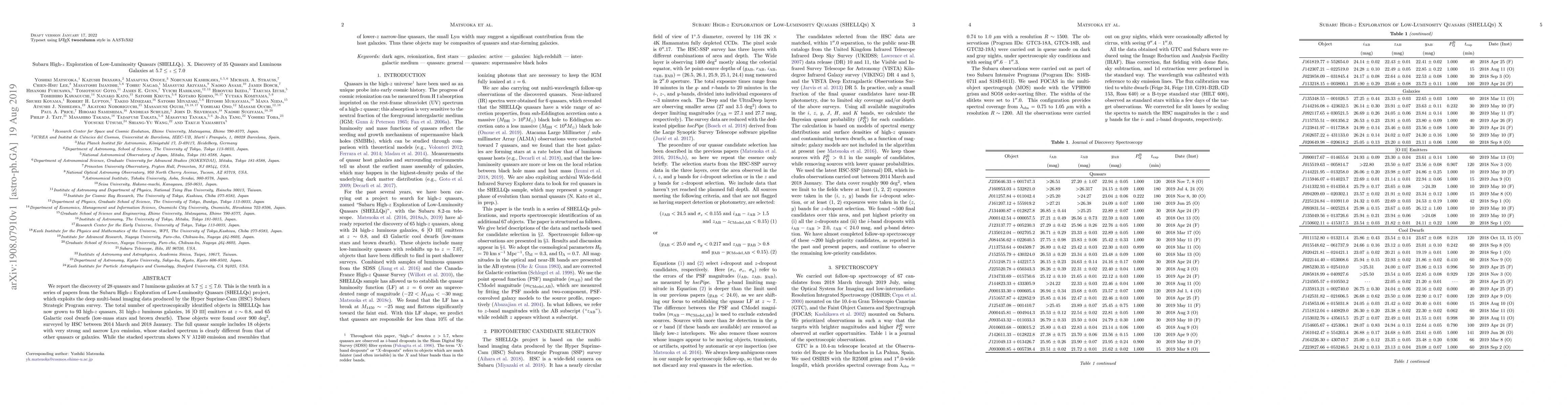 We report the discovery of 28 quasars and 7 luminous galaxies at 5.7 $\le$ z $\le$ 7.0. This is the tenth in a series of papers from the Subaru High-z Exploration of Low-Luminosity Quasars (SHELLQs) project, which exploits the deep multi-band imaging data produced by the Hyper Suprime-Cam (HSC) Subaru Strategic Program survey. The total number of spectroscopically identified objects in SHELLQs has now grown to 93 high-z quasars, 31 high-z luminous galaxies, 16 [O III] emitters at z ~ 0.8, and 65 Galactic cool dwarfs (low-mass stars and brown dwarfs). These objects were found over 900 deg2, surveyed by HSC between 2014 March and 2018 January. The full quasar sample includes 18 objects with very strong and narrow Ly alpha emission, whose stacked spectrum is clearly different from that of other quasars or galaxies. While the stacked spectrum shows N V 1240 emission and resembles that of lower-z narrow-line quasars, the small Ly alpha width may suggest a significant contribution from the host galaxies. Thus these objects may be composites of quasars and star-forming galaxies.