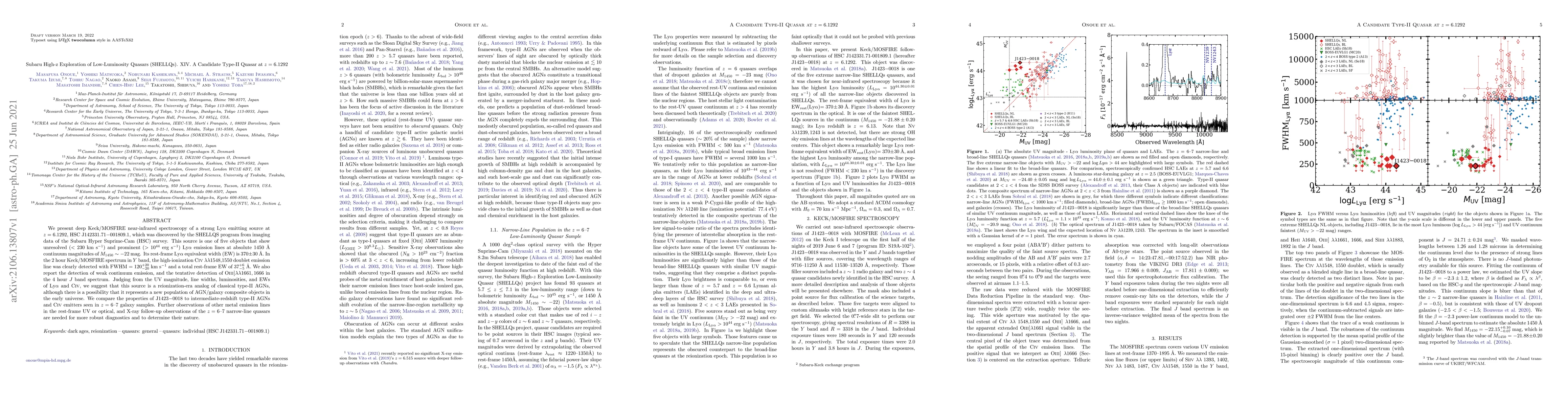 We present deep Keck/MOSFIRE near-infrared spectroscopy of a strong Lyman alpha emitting source at z=6.1292, HSC J142331.71-001809.1, which was discovered by the SHELLQS program from imaging data of the Subaru Hyper Suprime-Cam (HSC) survey. This source is one of five objects that show unresolved (<230 km s-1) and prominent (>10^44 erg s-1) Lyman alpha emission lines at absolute 1450 angstrom continuum magnitudes of M1450~-22 mag. Its rest-frame Lyman alpha equivalent width (EW) is 370+/-30 angstrom. In the 2 hour Keck/MOSFIRE spectrum in Y band, the high-ionization CIV 1548,1550 doublet emission line was clearly detected with FWHM =120+/-20 km s-1 and a total rest-frame EW of 37-5+6 angstrom. We also report the detection of weak continuum emission, and the tentative detection of OIII] 1661,1666 in the 4 hour J band spectrum. Judging from the UV magnitude, line widths, luminosities, and EWs of Lyman alpha and CIV, we suggest that this source is a reionization-era analog of classical type-II AGNs, although there is a possibility that it represents a new population of AGN/galaxy composite objects in the early universe. We compare the properties of J1423-0018 to intermediate-redshift type-II AGNs and CIV emitters seen in z=6-7 galaxy samples. Further observations of other metal emission lines in the rest-frame UV or optical, and X-ray follow-up observations of the z=6-7 narrow-line quasars are needed for more robust diagnostics and to determine their nature.