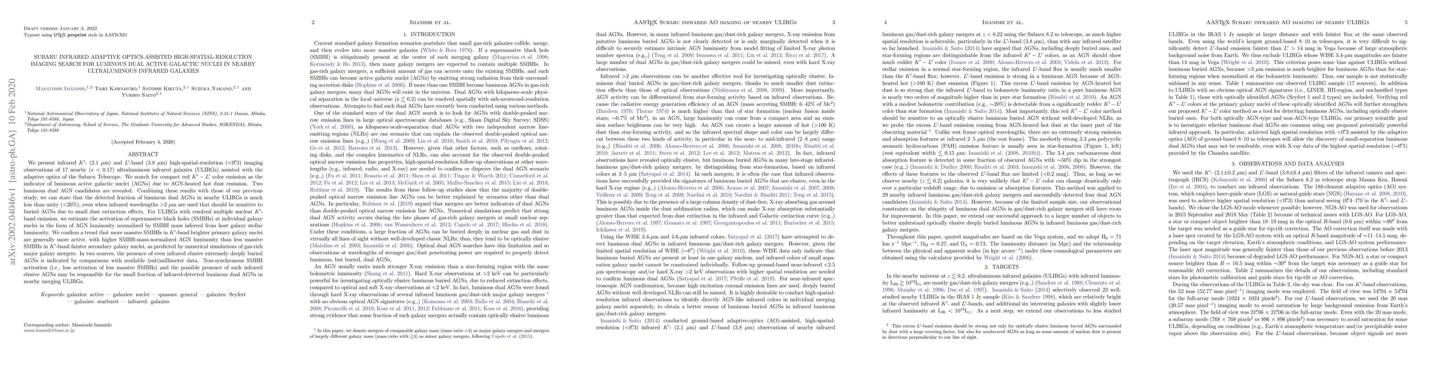 This paper uses Subaru Telescope's adaptive optics to conduct high-resolution infrared imaging of 17 nearby ultraluminous infrared galaxies (ULIRGs), revealing two luminous dual active galactic nuclei (AGN) candidates. The study finds that the fraction of dual AGNs in ULIRGs is less than 20%, suggesting non-synchronous activation of supermassive black holes in merging galaxies.