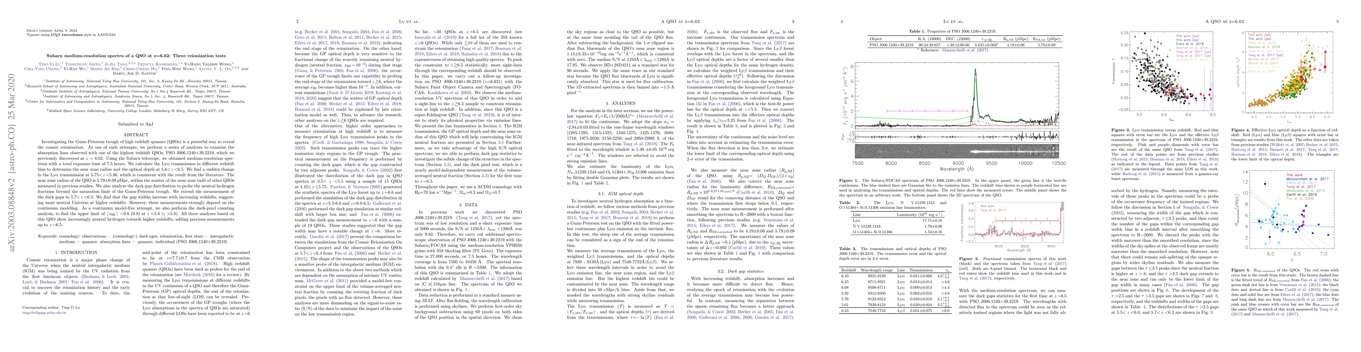 The research analyzes high redshift quasar PSO J006.1240+39.2219 at z=6.62 using Subaru telescope data. It finds evidence of a more neutral universe at higher redshifts through three methods: Lyα transmission changes, near zone radius calculation, and dark-pixel counting analysis. The findings support the reionization epoch, with neutral hydrogen fraction increasing towards z~6.5, although results depend on continuum modeling.