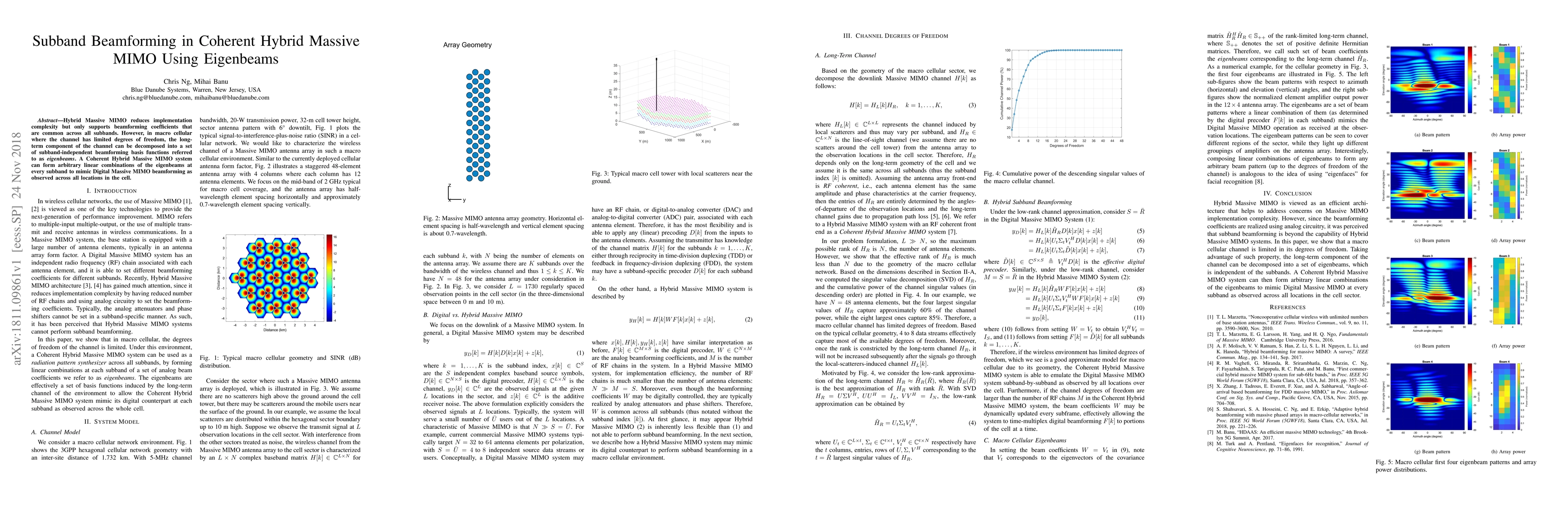 Hybrid Massive MIMO reduces implementation complexity but only supports beamforming coefficients that are common across all subbands. However, in macro cellular where the channel has limited degrees of freedom, the long-term component of the channel can be decomposed into a set of subband-independent beamforming basis functions referred to as eigenbeams. A Coherent Hybrid Massive MIMO system can form arbitrary linear combinations of the eigenbeams at every subband to mimic Digital Massive MIMO beamforming as observed across all locations in the cell.