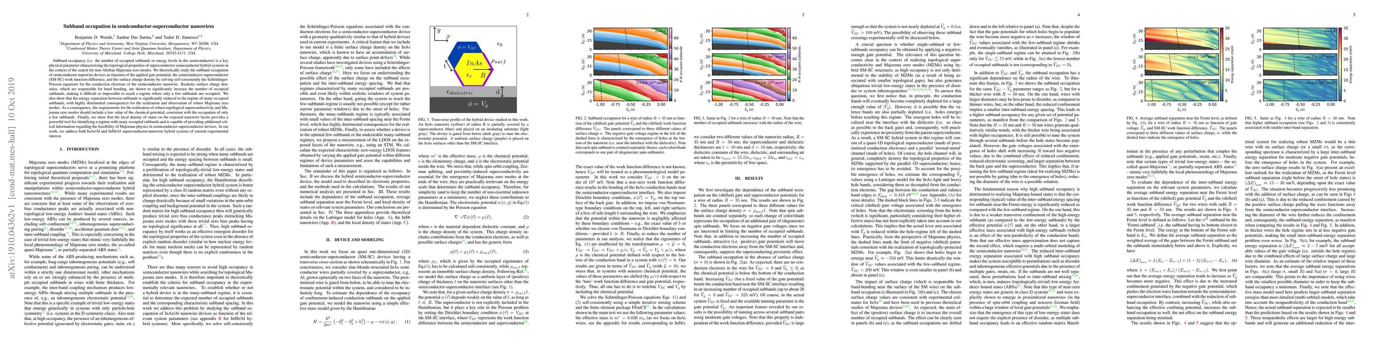 This paper investigates the subband occupancy in semiconductor-superconductor nanowires, finding that realistic surface charge densities significantly increase occupied subbands, hindering the realization of Majorana zero modes. It concludes that low chemical potential is essential for achieving few occupied subbands and robust topological superconductivity.
