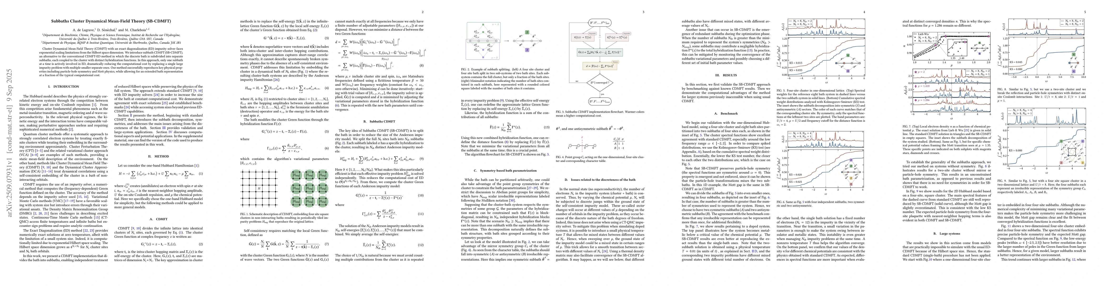 Cluster Dynamical Mean Field Theory (CDMFT) with an exact diagonalization (ED) impurity solver faces exponential scaling limitations from the Hilbert space dimension. We introduce subbath CDMFT (SB-CDMFT), an alternative to the conventional CDMFT-ED method in which the discrete bath is subdivided into separate subbaths, each coupled to the cluster with distinct hybridization functions. In this approach, only one subbath at a time is actively involved in ED, dramatically reducing the computational cost by replacing a single large impurity problem with multiple smaller separate ones. Our method successfully reproduces key physical properties including particle-hole symmetry and Mott physics, while allowing for an extended bath representation at a fraction of the typical computational cost.