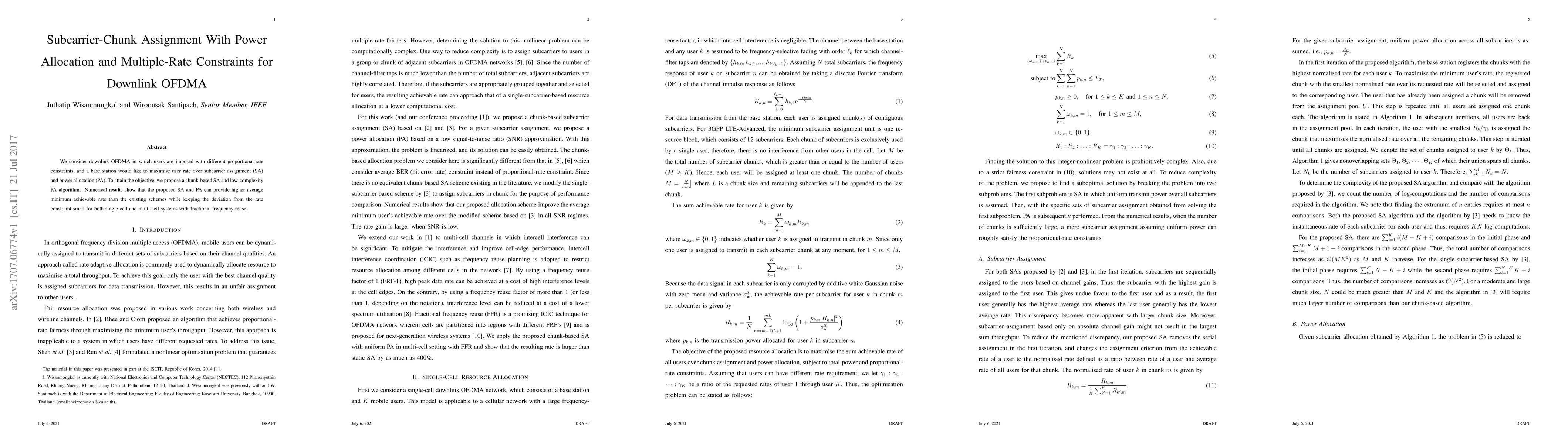 This paper proposes chunk-based subcarrier assignment and low-complexity power allocation algorithms for downlink OFDMA to maximize user rate while adhering to multiple-rate constraints. The results show improved average minimum achievable rate compared to existing schemes, with minimal deviation from the rate constraints in both single-cell and multi-cell systems.