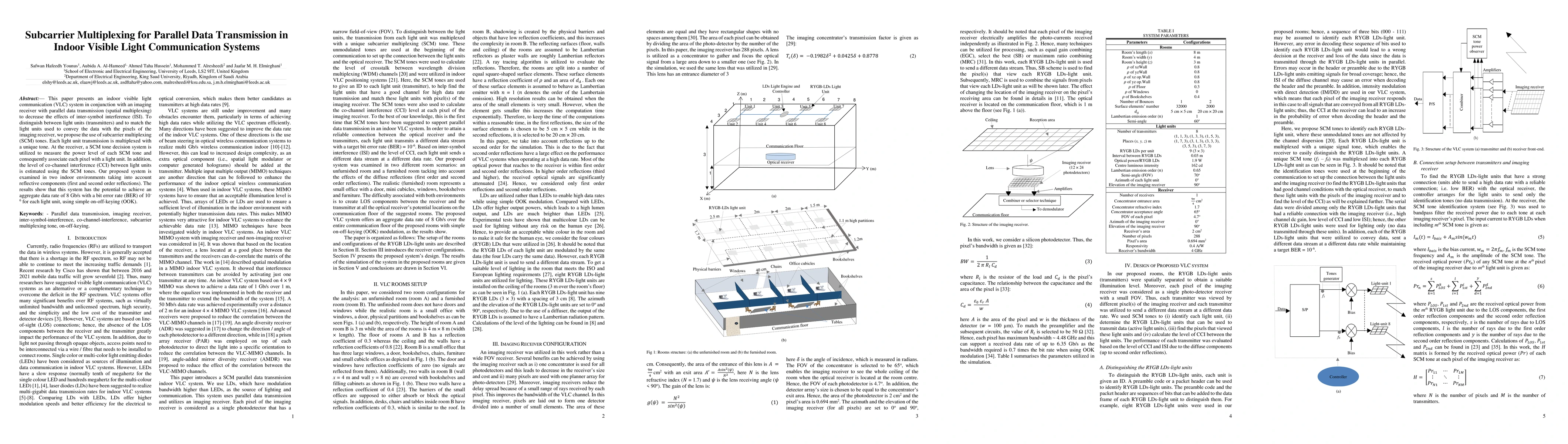 This paper proposes a visible light communication system using subcarrier multiplexing for parallel data transmission, aiming to reduce inter-symbol interference and co-channel interference. The system achieves high data rates and low error rates by associating unique tones with each light unit and employing an imaging receiver.