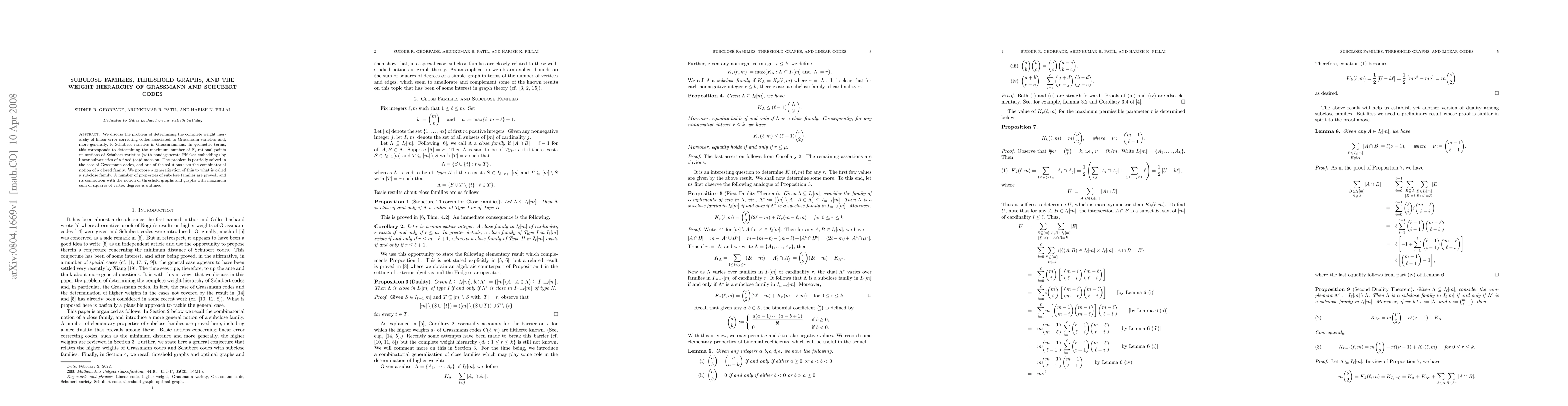 This paper explores the weight hierarchy of linear error-correcting codes related to Grassmann and Schubert varieties, proposing a generalization of closed families termed subclose families. It establishes properties of subclose families and links them to threshold graphs and graphs with maximum sum of squares of vertex degrees.