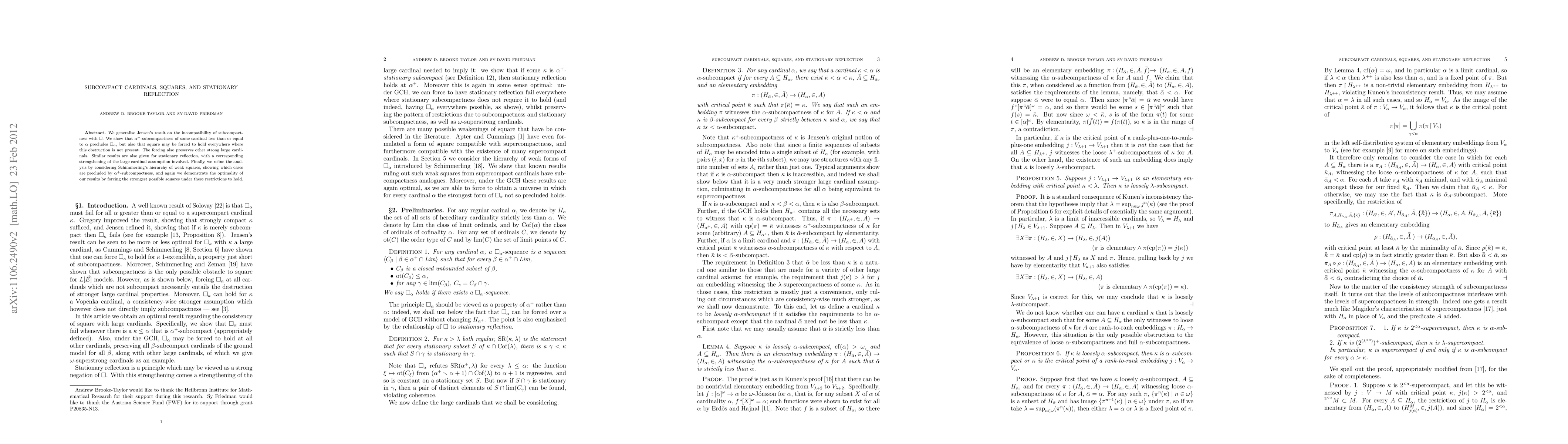 Researchers generalize a result on cardinals, squares, and stationary reflection, showing that subcompactness obstructs square but also forces it in certain cases, while preserving other large cardinal properties.