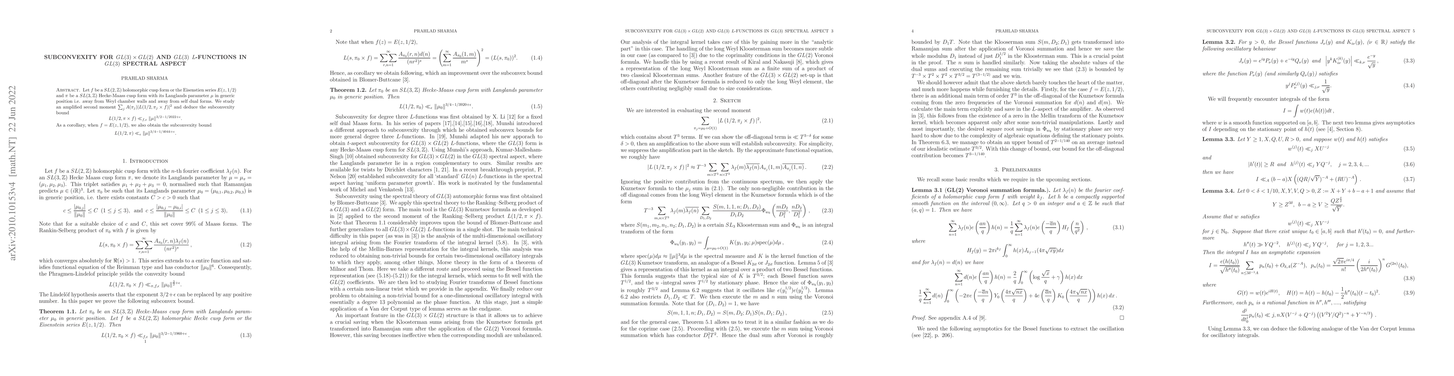Let $f$ be a $SL(2,\mathbb{Z})$ holomorphic cusp form or the Eisenstien series $E(z,1/2)$ and $\pi$ be a $SL(3,\mathbb{Z})$ Hecke-Maass cusp form with its Langlands parameter $\mu$ in generic position i.e. away from Weyl chamber walls and away from self dual forms. We study an amplified second moment $\sum_{j} A(\pi_j)|L(1/2,\pi_j\times f)|^2$ and deduce the subconvexity bound \begin{equation*} L(1/2,\pi\times f)\ll_{f,\epsilon} \|\mu\|^{3/2-1/2022+\epsilon}. \end{equation*} As a corollary, when $f=E(z,1/2)$, we also obtain the subconvexity bound \begin{equation*} L(1/2,\pi)\ll_{\epsilon} \|\mu\|^{3/4-1/4044+\epsilon}. \end{equation*}