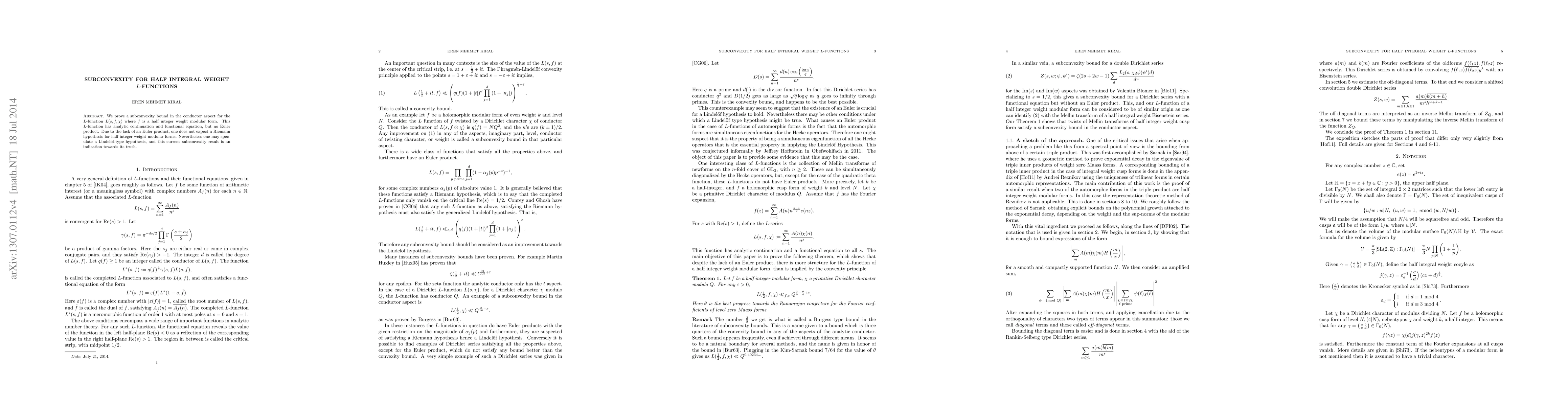 This paper establishes a subconvexity bound for the conductor of $L(s,f,\chi)$, where $f$ is a half integer weight modular form, indicating potential support for a Lindelof-type hypothesis despite the absence of an Euler product for these $L$-functions.