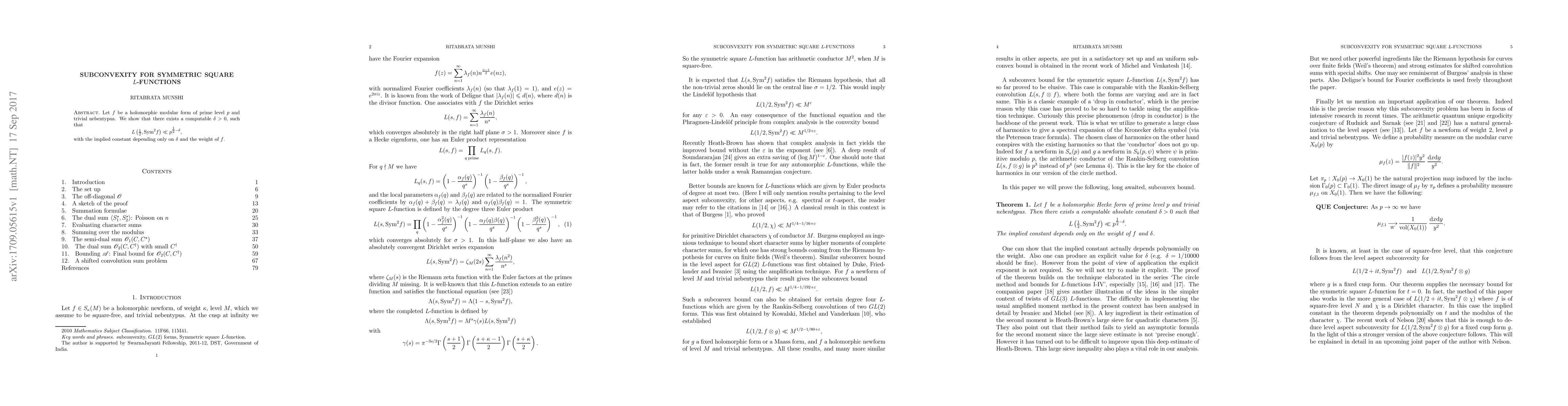 Let $f$ be a holomorphic modular form of prime level $p$ and trivial nebentypus. We show that there exists a computable $\delta>0$, such that $$ L\left(\tfrac{1}{2},\mathrm{Sym}^2 f\right)\ll p^{\tfrac{1}{2}-\delta}, $$ with the implied constant depending only on $\delta$ and the weight of $f$.