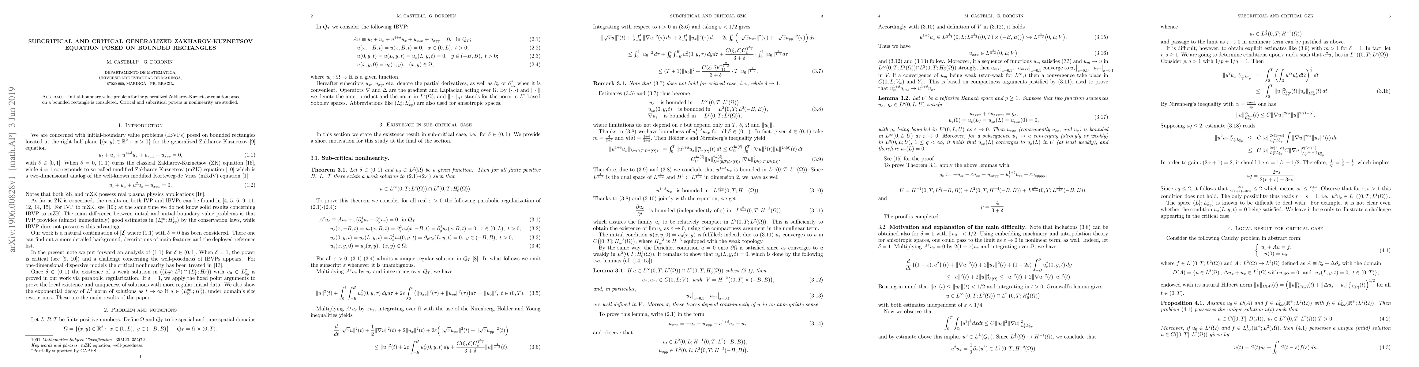 Summary: This paper investigates the initial-boundary value problem for the generalized Zakharov-Kuznetsov equation on bounded rectangles, focusing on the analysis of critical and subcritical powers in the equation's nonlinearity.