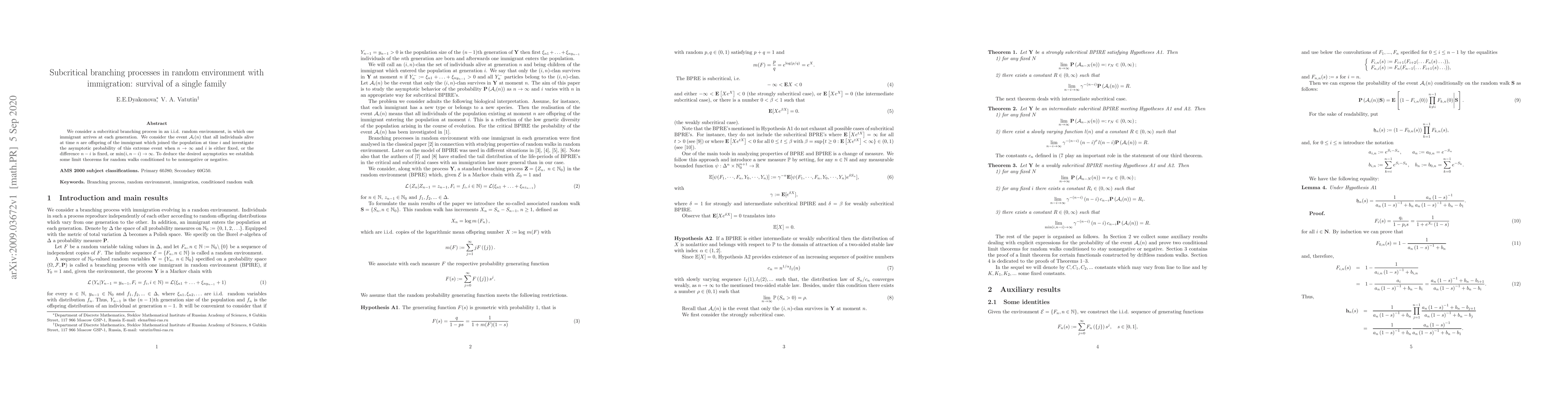 We consider a subcritical branching process in an i.i.d. random environment, in which one immigrant arrives at each generation. We consider the event $% \mathcal{A}_{i}(n)$ that all individuals alive at time $n$ are offspring of the immigrant which joined the population at time $i$ and investigate the asymptotic probability of this extreme event when $n\to\infty$ and $i$ is either fixed, or the difference $n-i$ is fixed, or $\min(i,n-i)\to\infty.$ To deduce the desired asymptotics we establish some limit theorems for random walks conditioned to be nonnegative or negative.