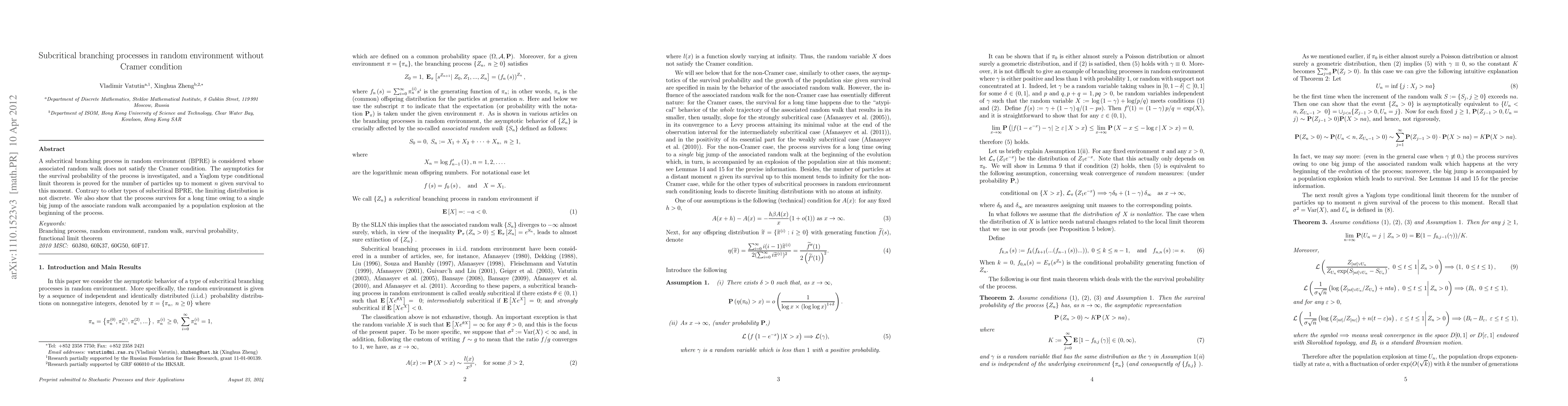 This paper investigates the survival probability of a subcritical branching process in random environment where the associated random walk does not satisfy the Cramer condition. It proves a Yaglom type conditional limit theorem for the number of particles, revealing a non-discrete limiting distribution and demonstrating long-term survival due to an initial population explosion.