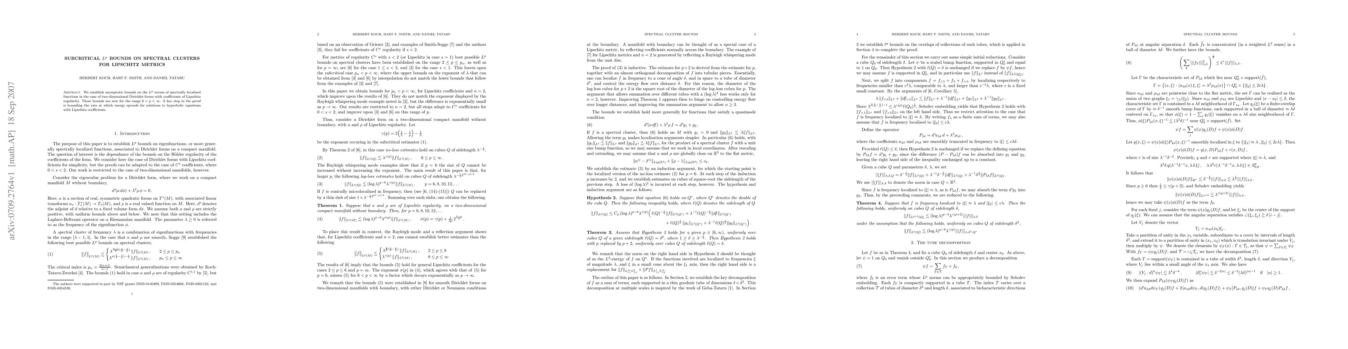 Researchers established new bounds on energy spread for solutions to hyperbolic equations with Lipschitz coefficients in 2D Dirichlet forms, improving understanding of spectral clusters.