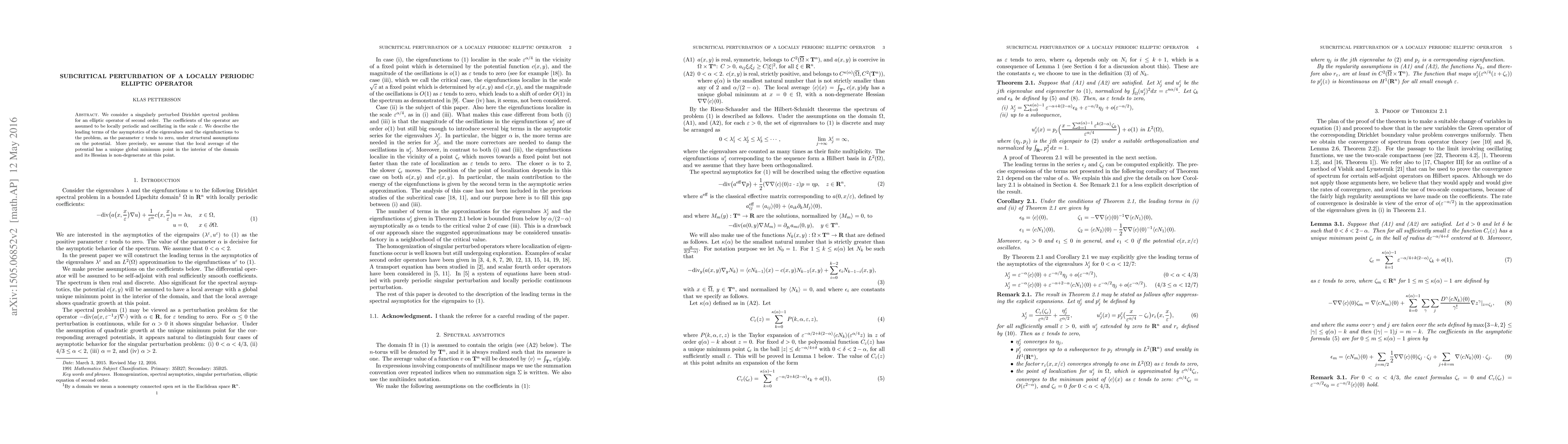 This paper studies the asymptotic behavior of eigenvalues and eigenfunctions for a singularly perturbed elliptic operator with locally periodic coefficients as the perturbation parameter tends to zero. It focuses on the leading terms under the assumption that the potential has a unique global minimum with a non-degenerate Hessian.