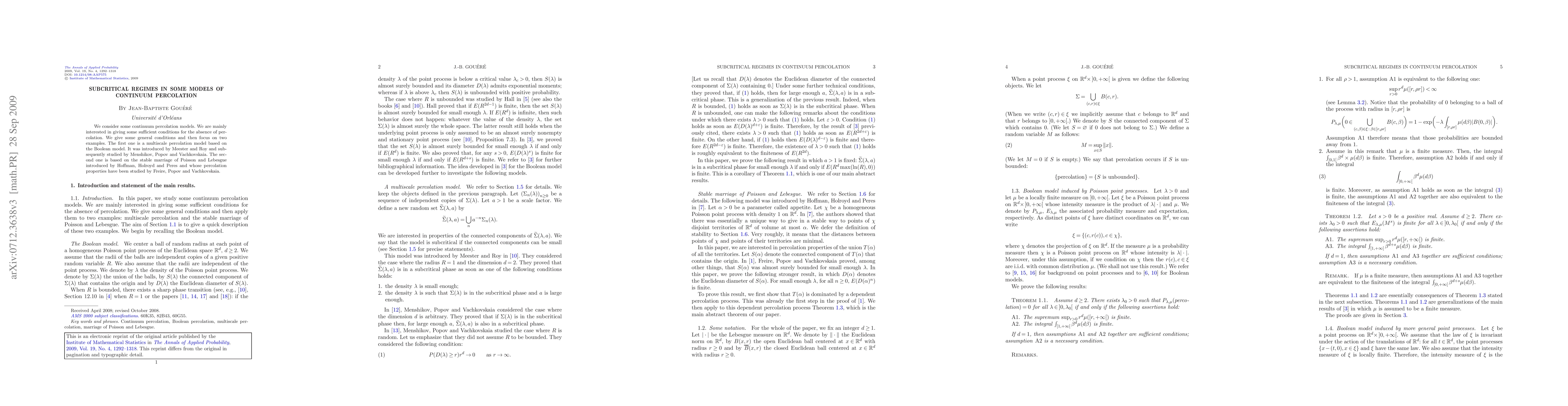 We consider some continuum percolation models. We are mainly interested in giving some sufficient conditions for absence of percolation. We give some general conditions and then focuse on two examples. The first one is a multiscale percolation model based on the Boolean model. It was introduced by Meester and Roy and subsequently studied by Menshikov, Popov and Vachkovskaia. The second one is based on the stable marriage of Poisson and Lebesgue introduced by Hoffman, Holroyd and Peres and whose percolation properties have been studied by Freire, Popov and Vachkovskaia.