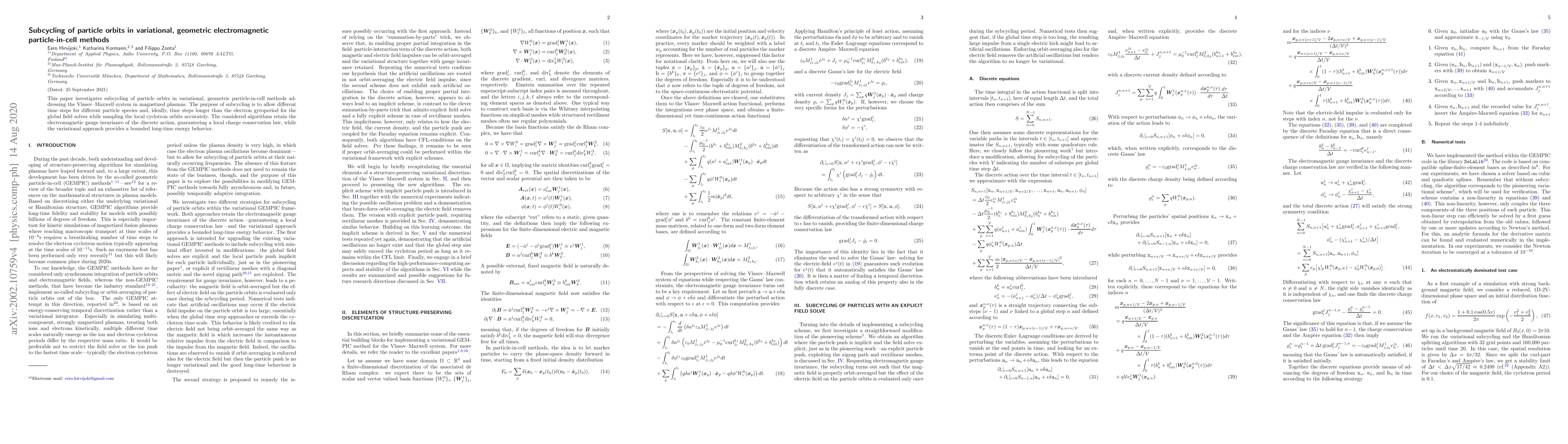 This paper investigates subcycling of particle orbits in variational, geometric particle-in-cell methods addressing the Vlasov--Maxwell system in magnetized plasmas. The purpose of subcycling is to allow different time steps for different particle species and, ideally, time steps longer than the electron gyroperiod for the global field solves while sampling the local cyclotron orbits accurately. The considered algorithms retain the electromagnetic gauge invariance of the discrete action, guaranteeing a local charge conservation law, while the variational approach provides a bounded long-time energy behavior.