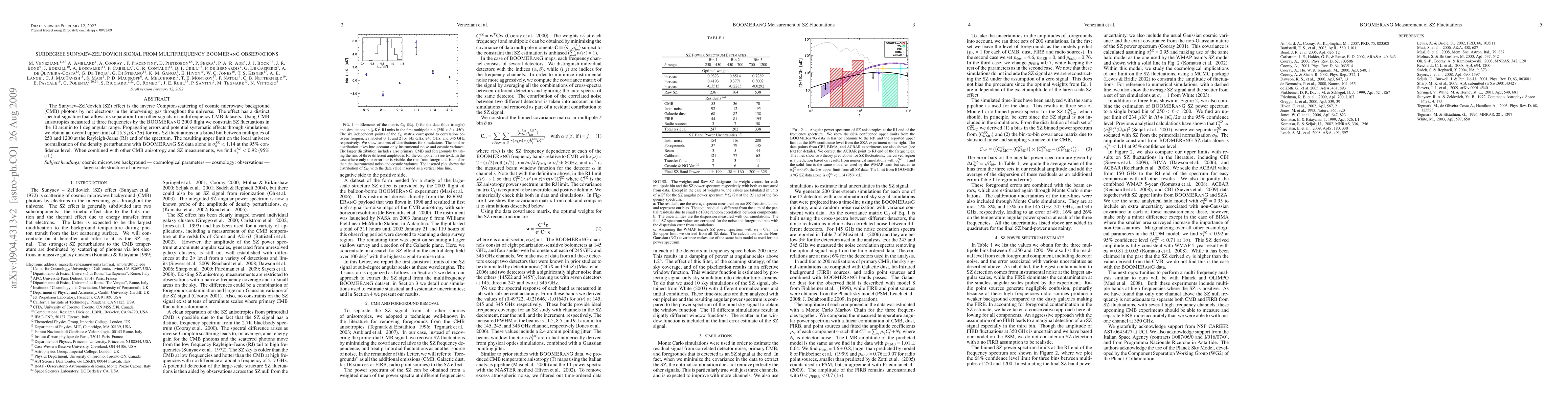 The Sunyaev-Zel'dovich (SZ) effect is the inverse Compton-scattering of cosmic microwave background (CMB) photons by hot electrons in the intervening gas throughout the universe. The effect has a distinct spectral signature that allows its separation from other signals in multifrequency CMB datasets. Using CMB anisotropies measured at three frequencies by the BOOMERanG 2003 flight we constrain SZ fluctuations in the 10 arcmin to 1 deg angular range. Propagating errors and potential systematic effects through simulations, we obtain an overall upper limit of 15.3 uK (2 sigma) for rms SZ fluctuations in a broad bin between multipoles of of 250 and 1200 at the Rayleigh-Jeans (RJ) end of the spectrum. When combined with other CMB anisotropy and SZ measurements, we find that the local universe normalization of the density perturbations is sigma-8(SZ) < 0.96 at the 95% confidence level, consistent with sigma-8 determined from primordial perturbations.