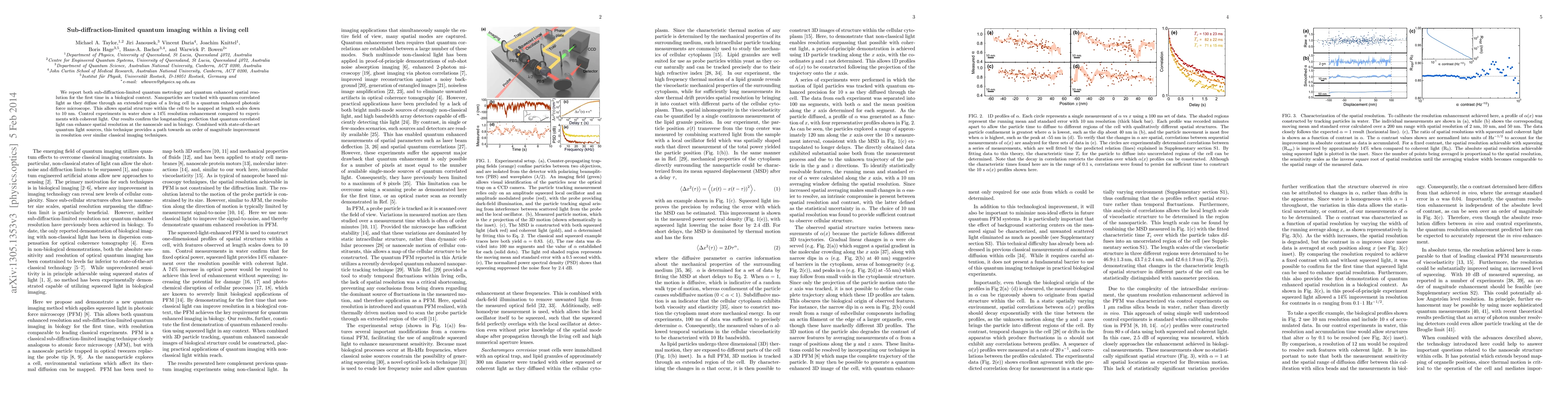 This paper demonstrates sub-diffraction-limited quantum imaging within a living cell, achieving spatial resolution down to 10 nm using quantum correlated light. The technique shows a 14% resolution enhancement over coherent light, confirming quantum light's potential to significantly improve nanoscale imaging in biological contexts.