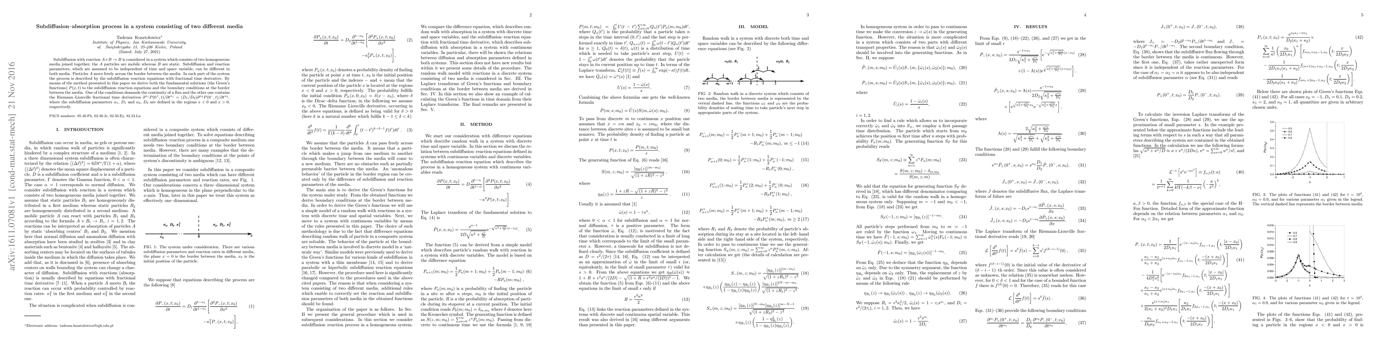 This paper investigates subdiffusion with reaction $A+B\rightarrow B$ in a system of two distinct homogeneous media, deriving fundamental solutions and boundary conditions that ensure continuity of flux across the interface, incorporating Riemann-Liouville fractional derivatives.