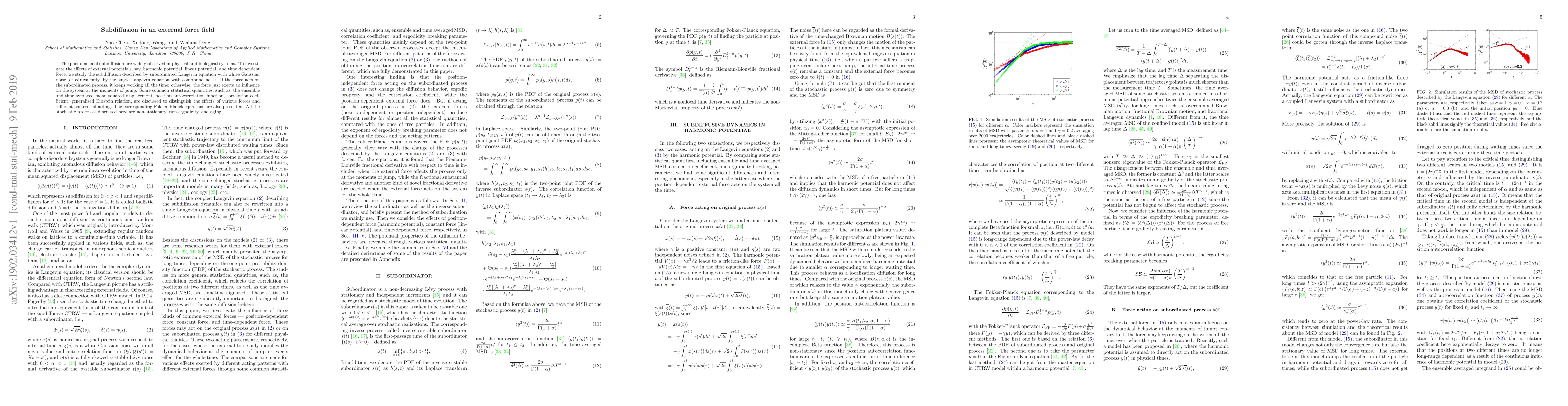 This paper investigates subdiffusion in external force fields using a combination of analytical methods and stochastic processes, exploring the effects of different forces on mean squared displacement and autocorrelation functions.