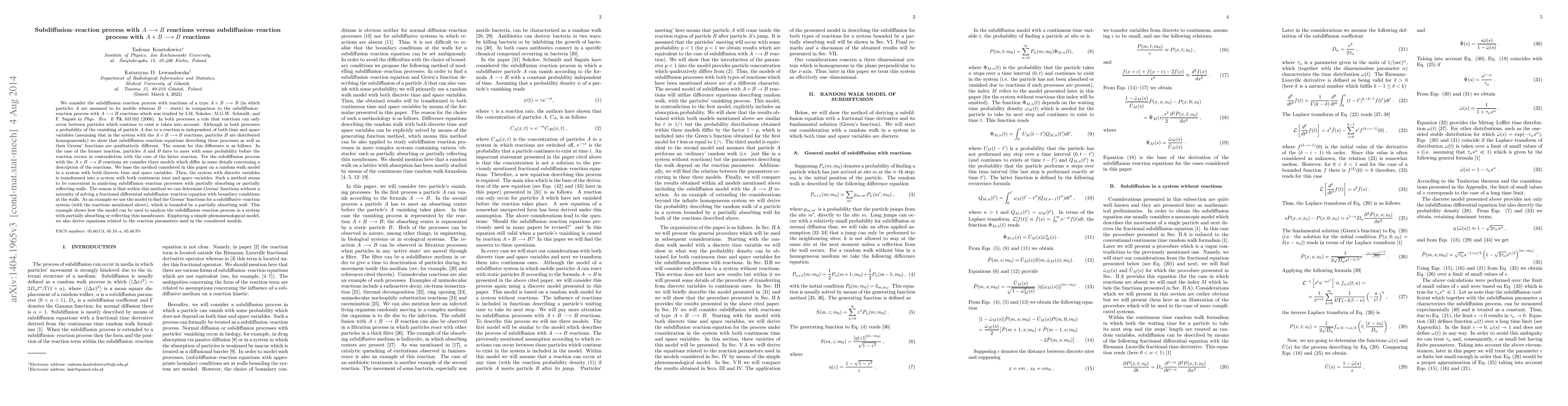 This paper compares two subdiffusion-reaction processes: one with $A+B\rightarrow B$ reactions and another with $A\rightarrow B$ reactions. It demonstrates that despite similar particle disappearance probabilities, the subdiffusion-reaction equations and their Green's functions differ qualitatively, and proposes a random walk model to analyze these processes, particularly in systems with partially absorbing or reflecting walls.