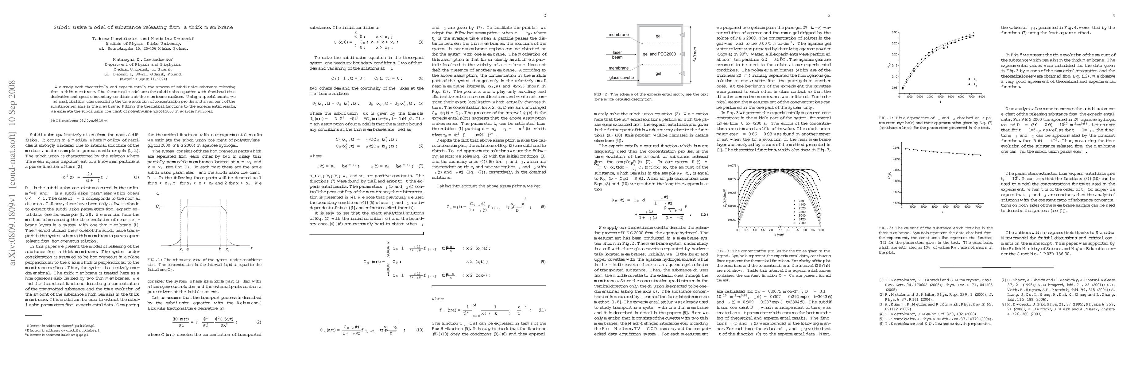 Researchers developed a theoretical model to describe subdiffusive substance release from thick membranes, matching experimental results to estimate the subdiffusion coefficient of polyethylene glycol 2000 in agarose hydrogel.