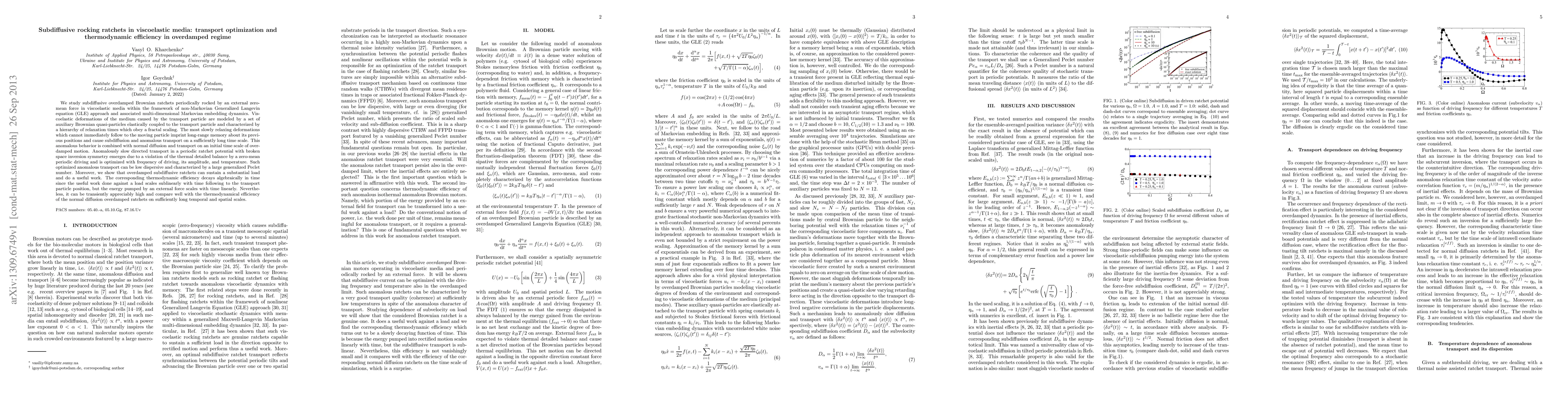 This paper investigates subdiffusive transport in viscoelastic media using a Generalized Langevin equation approach, focusing on overdamped Brownian ratchets periodically rocked by an external force. It finds that anomalous transport emerges due to memory effects from viscoelastic deformations, which can be optimized for low dispersion and high generalized Peclet number. Thermodynamic efficiency is shown to decay algebraically over time, though it can be temporarily high, comparable to normal diffusion ratchets.