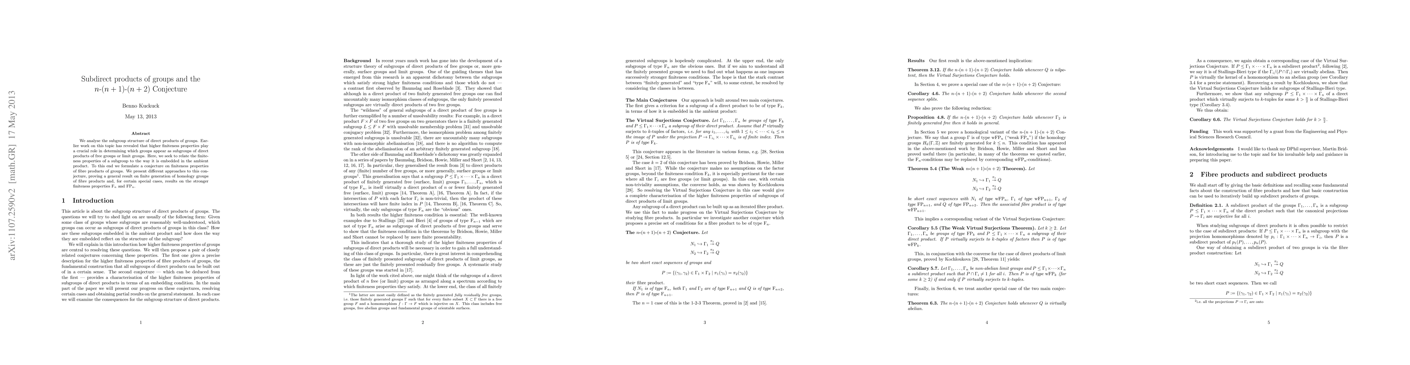 This paper investigates the subgroup structure of direct products of groups, focusing on how higher finiteness properties influence which groups emerge as subgroups. The authors propose a conjecture on the finiteness properties of fibre products of groups and present proofs for specific cases, notably achieving results on finite generation of homology groups and the stronger finiteness properties F_n and FP_n.