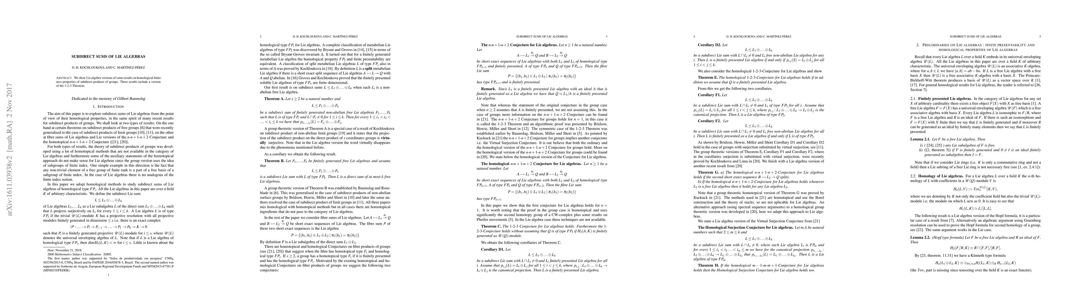 Summary: This paper demonstrates Lie algebra analogs of homological finiteness properties for subdirect sums, extending results from group theory, including a reformulation of the 1-2-3 Theorem.