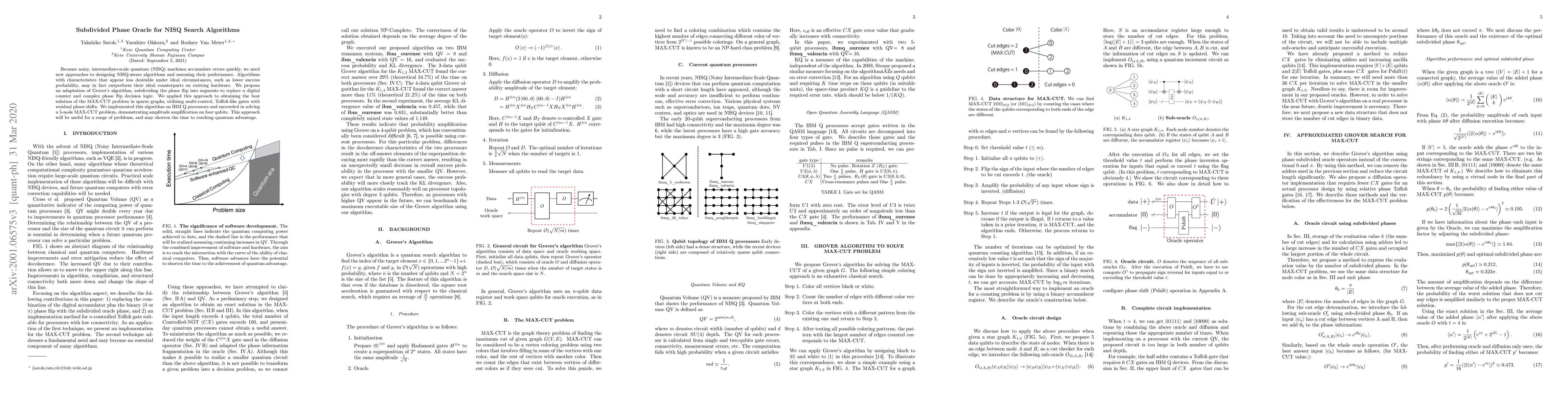 Because noisy, intermediate-scale quantum (NISQ) machines accumulate errors quickly, we need new approaches to designing NISQ-aware algorithms and assessing their performance. Algorithms with characteristics that appear less desirable under ideal circumstances, such as lower success probability, may in fact outperform their ideal counterparts on existing hardware. We propose an adaptation of Grover's algorithm, subdividing the phase flip into segments to replace a digital counter and complex phase flip decision logic. We applied this approach to obtaining the best solution of the MAX-CUT problem in sparse graphs, utilizing multi-control, Toffoli-like gates with residual phase shifts. We implemented this algorithm on IBM Q processors and succeeded in solving a 5-node MAX-CUT problem, demonstrating amplitude amplification on four qubits. This approach will be useful for a range of problems, and may shorten the time to reaching quantum advantage.