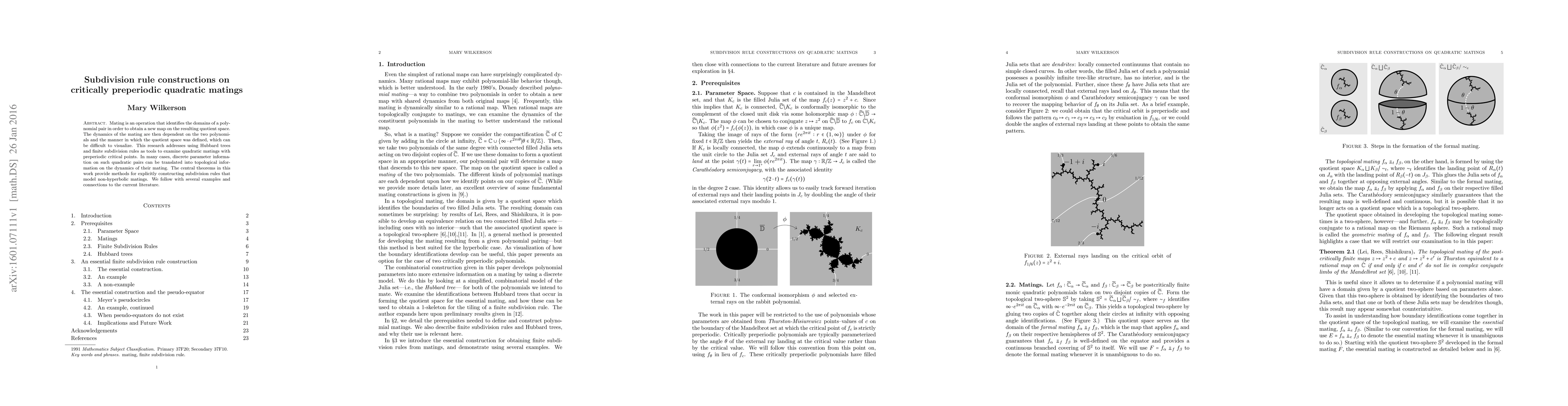 This research develops methods for constructing subdivision rules to analyze quadratic matings with preperiodic critical points using Hubbard trees and finite subdivision rules, providing a way to translate discrete parameter information into topological insights on the dynamics of these matings. The central theorems offer explicit construction techniques for modeling non-hyperbolic matings, supplemented by examples and connections to existing literature.