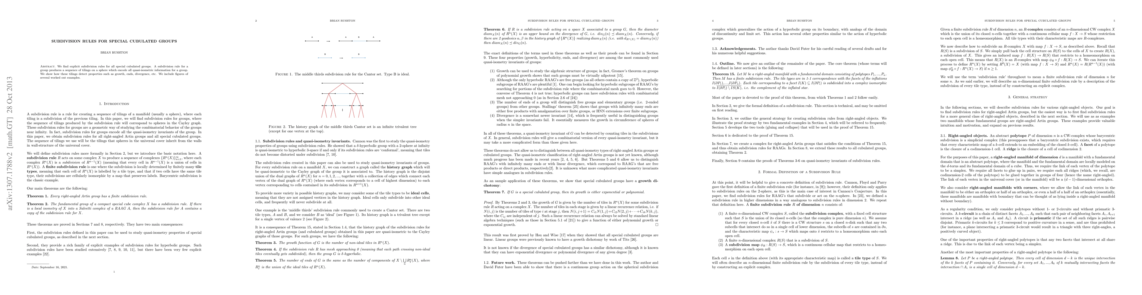 Researchers found explicit subdivision rules for special cubulated groups, revealing sequences of tilings that capture group properties like growth and ends. These discoveries provide a new tool for studying these complex mathematical objects.