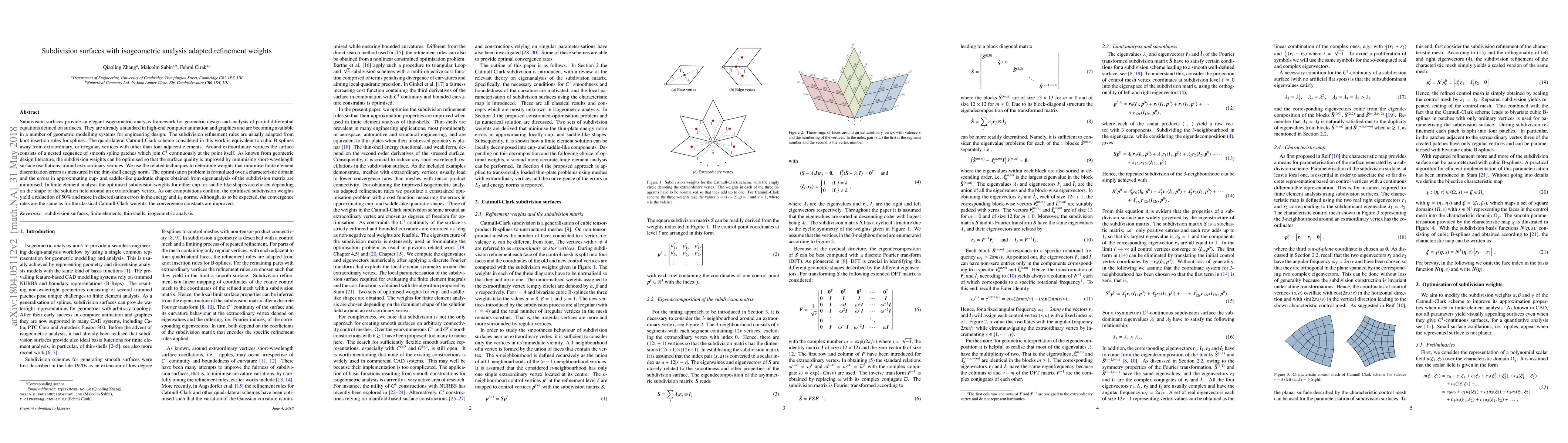 Subdivision surfaces provide an elegant isogeometric analysis framework for geometric design and analysis of partial differential equations defined on surfaces. They are already a standard in high-end computer animation and graphics and are becoming available in a number of geometric modelling systems for engineering design. The subdivision refinement rules are usually adapted from knot insertion rules for splines. The quadrilateral Catmull-Clark scheme considered in this work is equivalent to cubic B-splines away from extraordinary, or irregular, vertices with other than four adjacent elements. Around extraordinary vertices the surface consists of a nested sequence of smooth spline patches which join $C^1$ continuously at the point itself. As known from geometric design literature, the subdivision weights can be optimised so that the surface quality is improved by minimising short-wavelength surface oscillations around extraordinary vertices. We use the related techniques to determine weights that minimise finite element discretisation errors as measured in the thin-shell energy norm. The optimisation problem is formulated over a characteristic domain and the errors in approximating cup- and saddle-like quadratic shapes obtained from eigenanalysis of the subdivision matrix are minimised. In finite element analysis the optimised subdivision weights for either cup- or saddle-like shapes are chosen depending on the shape of the solution field around an extraordinary vertex. As our computations confirm, the optimised subdivision weights yield a reduction of $50\%$ and more in discretisation errors in the energy and $L_2$ norms. Although, as to be expected, the convergence rates are the same as for the classical Catmull-Clark weights, the convergence constants are improved.