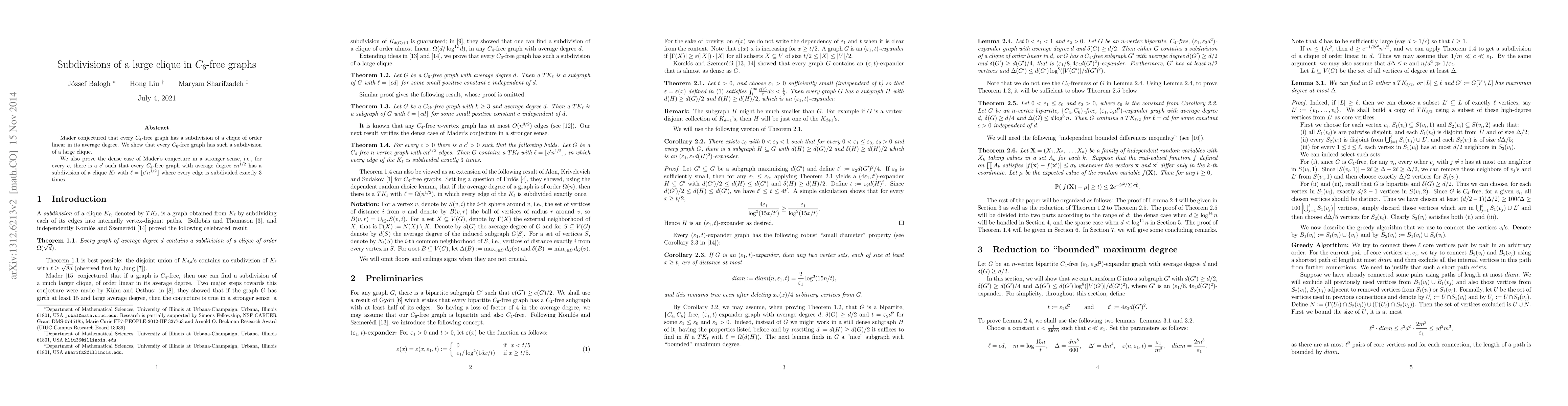 This paper proves that every C6-free graph contains a subdivision of a large clique, addressing a conjecture by Mader about C4-free graphs. It also strengthens Mader's conjecture for dense graphs, ensuring a subdivision of a clique of size linear in average degree, with edges subdivided exactly three times.