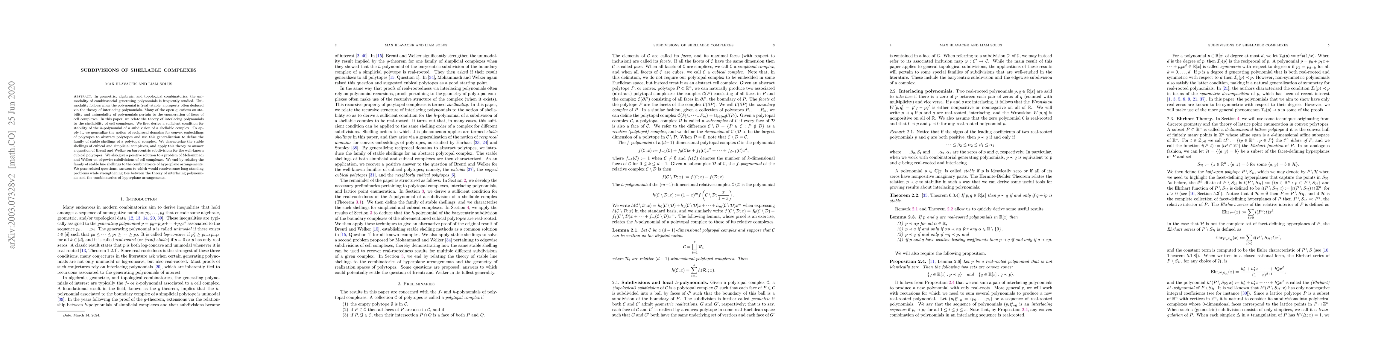 A combination of theoretical analysis and computational verification was used to investigate the properties of shellable complexes.