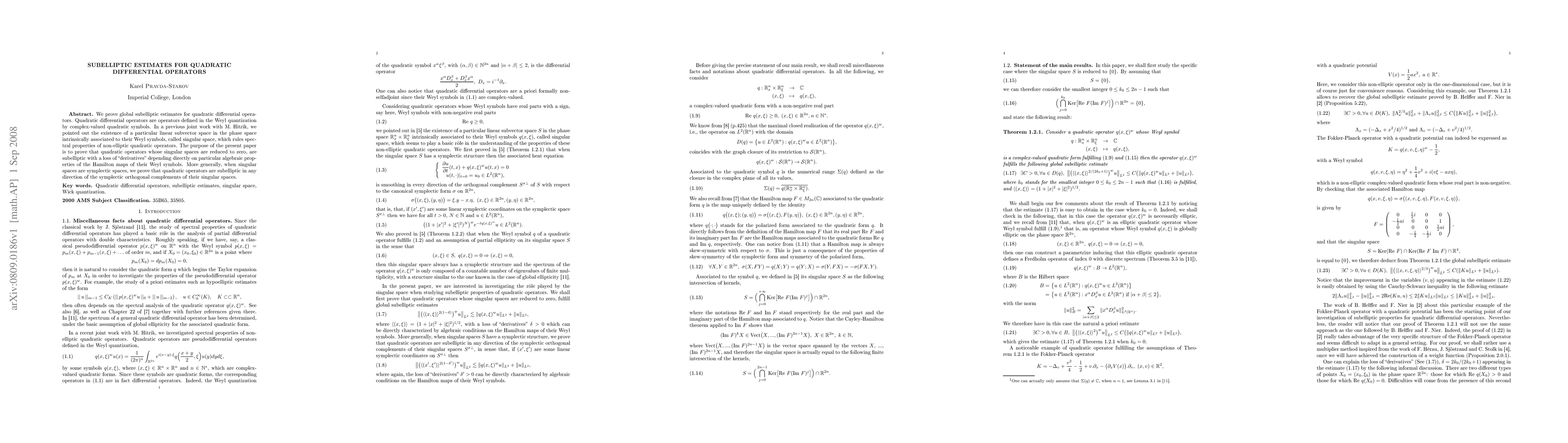 The paper proves global subelliptic estimates for quadratic differential operators defined via Weyl quantization. It establishes that operators with reduced singular spaces are subelliptic, with the degree of subellipticity depending on the algebraic properties of the associated Hamilton maps.