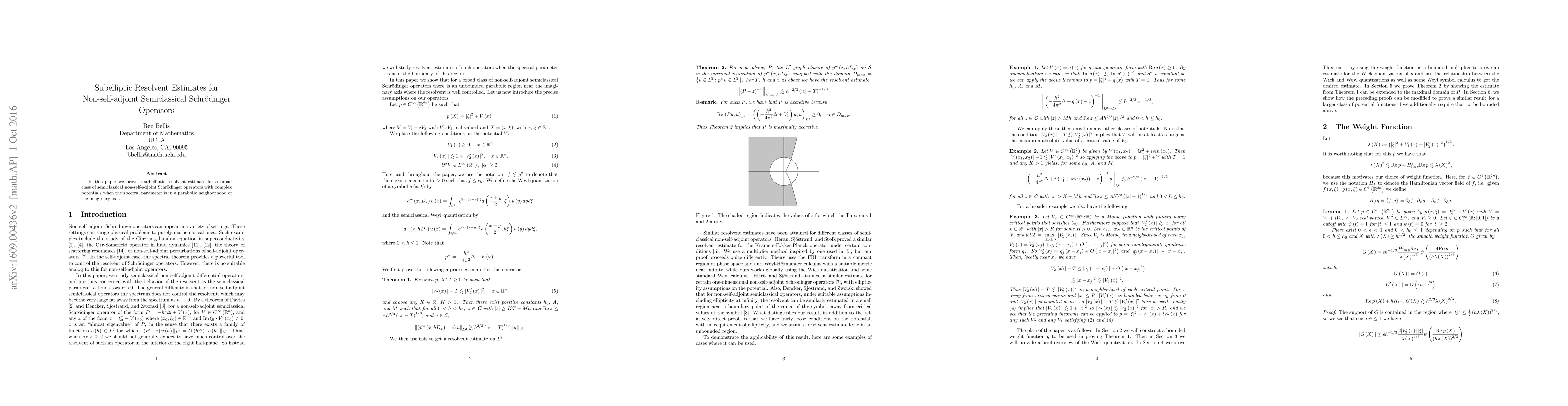 In this paper we prove a subelliptic resolvent estimate for a class of semiclassical non-self-adjoint Schr\"odinger operators with purely imaginary potentials when the spectral parameter is in a parabolic neighborhood of the imaginary axis.