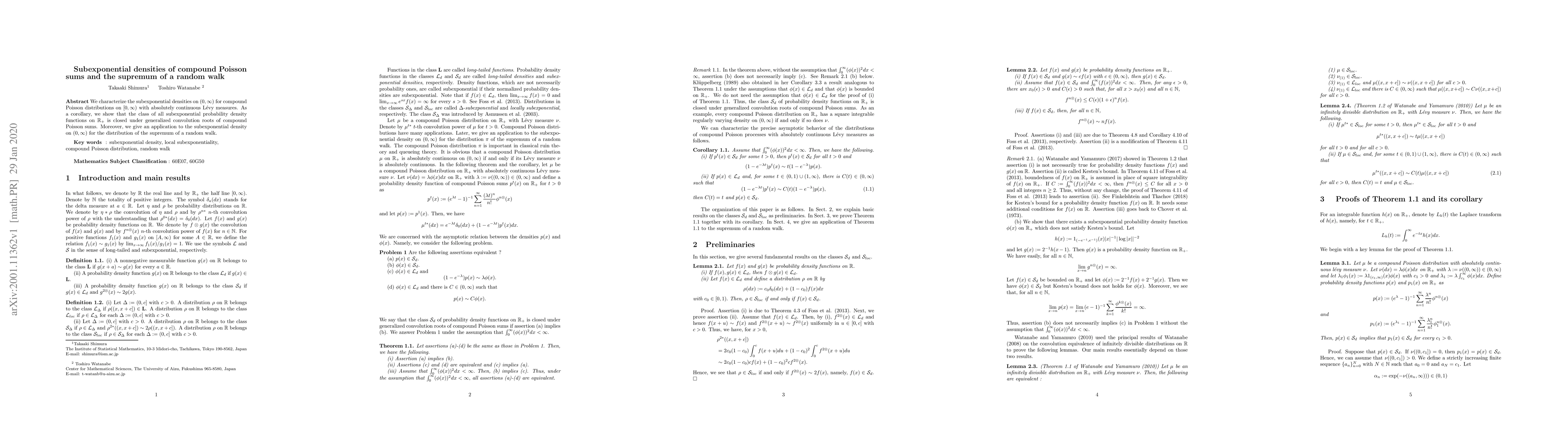 This paper characterizes subexponential densities for compound Poisson distributions and proves that the class of subexponential densities is closed under generalized convolution roots. It also applies these findings to determine the subexponential density for the supremum of a random walk.