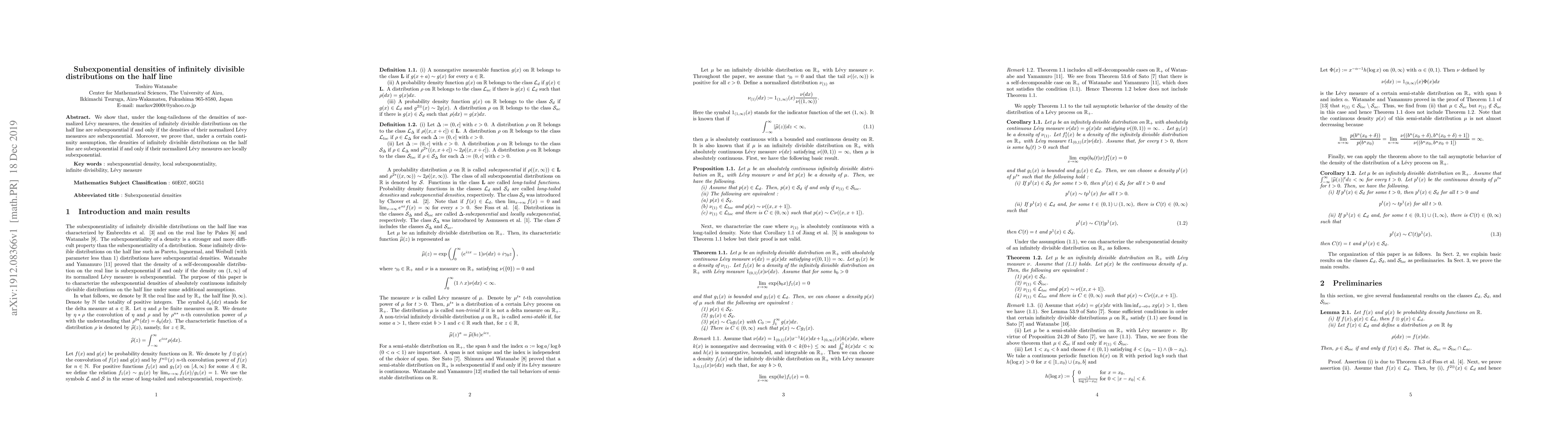 This paper demonstrates that the subexponentiality of densities for infinitely divisible distributions on the half line is equivalent to the subexponentiality of their normalized Lévy measures. Additionally, it proves that under a continuity assumption, the densities are subexponential if and only if their normalized Lévy measures are locally subexponential.