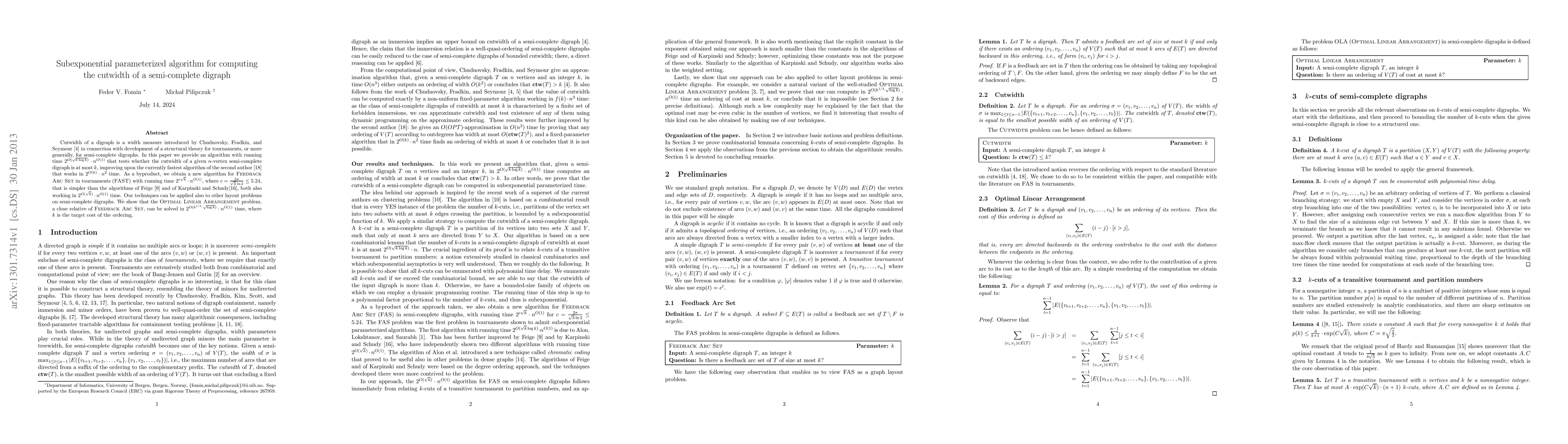 This paper presents a subexponential parameterized algorithm with a running time of 2^{O(\sqrt{k log k})} * n^{O(1)} for computing the cutwidth of semi-complete digraphs, improving upon previous algorithms. It also introduces a simpler algorithm for Feedback Arc Set in tournaments with a running time of 2^{c\sqrt{k}} * n^{O(1)}, where c is a constant.
