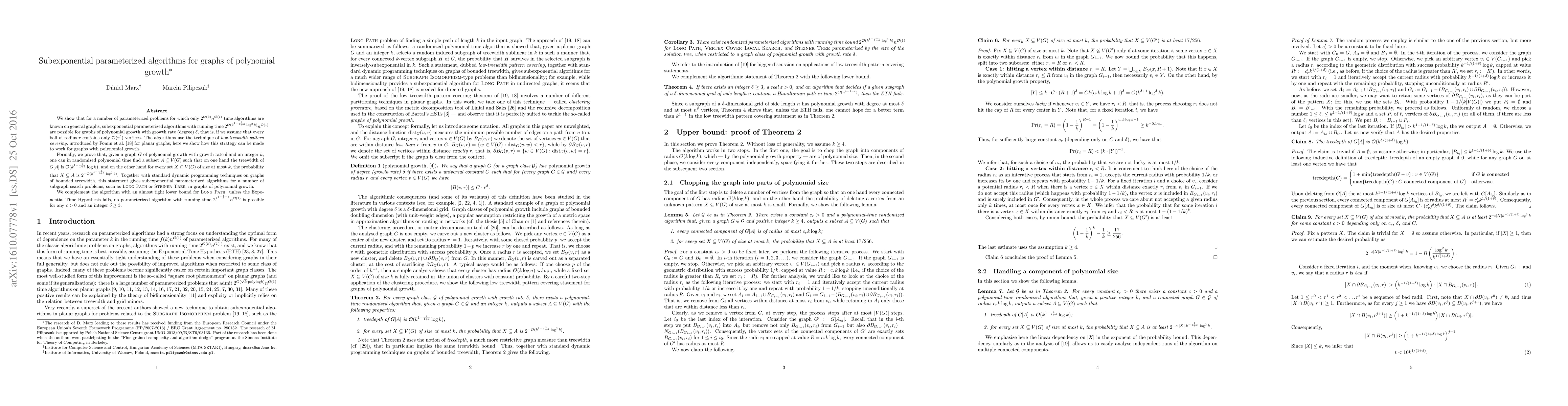 This research paper presents subexponential parameterized algorithms for solving certain graph problems on graphs of polynomial growth, achieving a running time of $2^{O(k^{1-\frac{1}{1+\delta}} \log^2 k)} n^{O(1)}$. It employs a low-treewidth pattern covering technique and complements the results with a nearly tight lower bound for the Long Path problem.