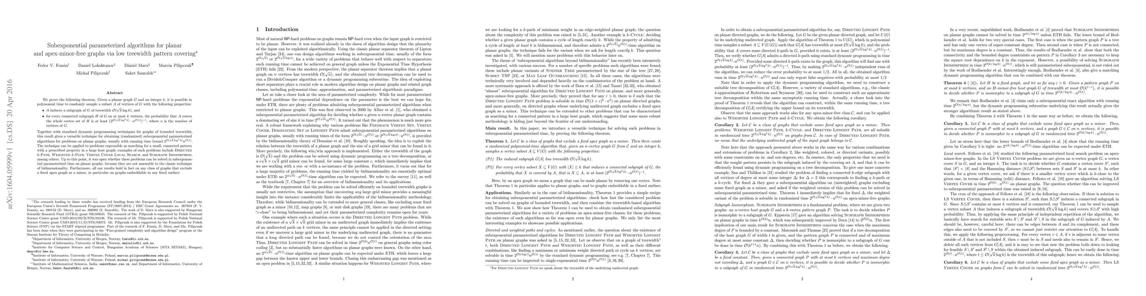 Saket Saurabh, Jie Xue, Daniel Lokshtanov et al.