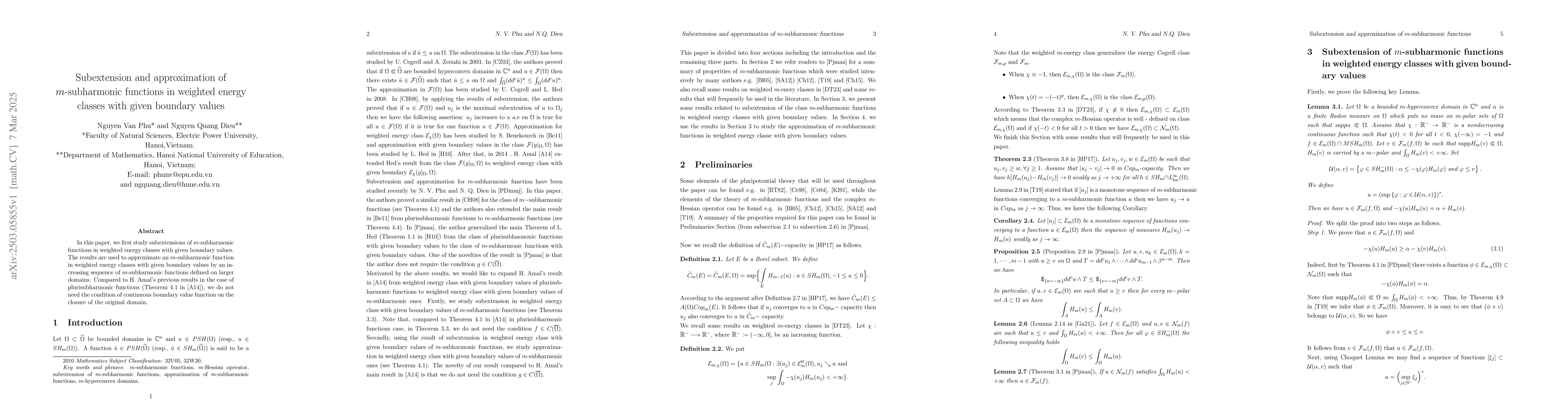 Summary: This paper investigates subextensions of m-subharmonic functions in weighted energy classes with specified boundary values and utilizes these findings to approximate such functions using an increasing sequence of m-subharmonic functions on progressively larger domains.