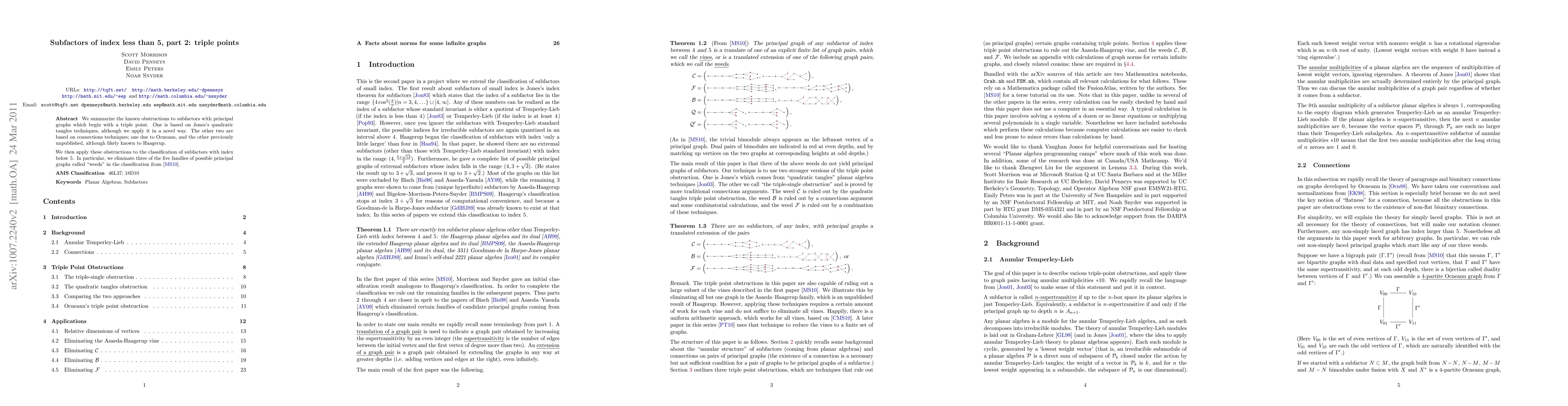 This paper identifies and applies several obstructions to subfactors starting with a triple point in their principal graphs, including novel uses of Jones's quadratic tangles and unpublished connections techniques. It classifies subfactors with index less than 5, eliminating three "weed" families of principal graphs.