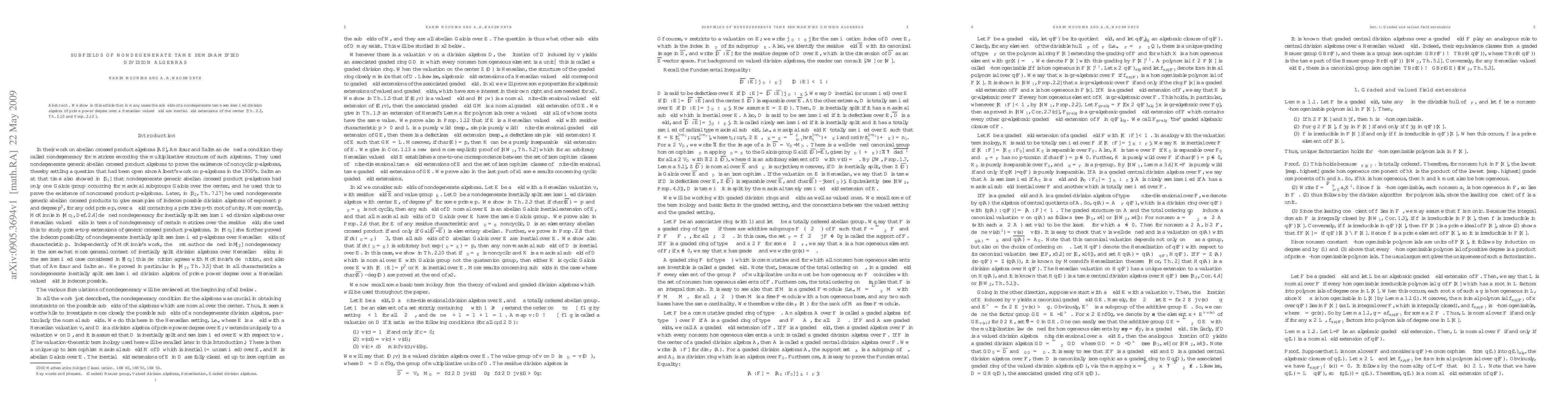 Summary: This paper demonstrates that subfields of nondegenerate tame semiramified division algebras of prime power degree over Henselian valued fields are often inertial extensions of the center, providing insights into their structural properties.