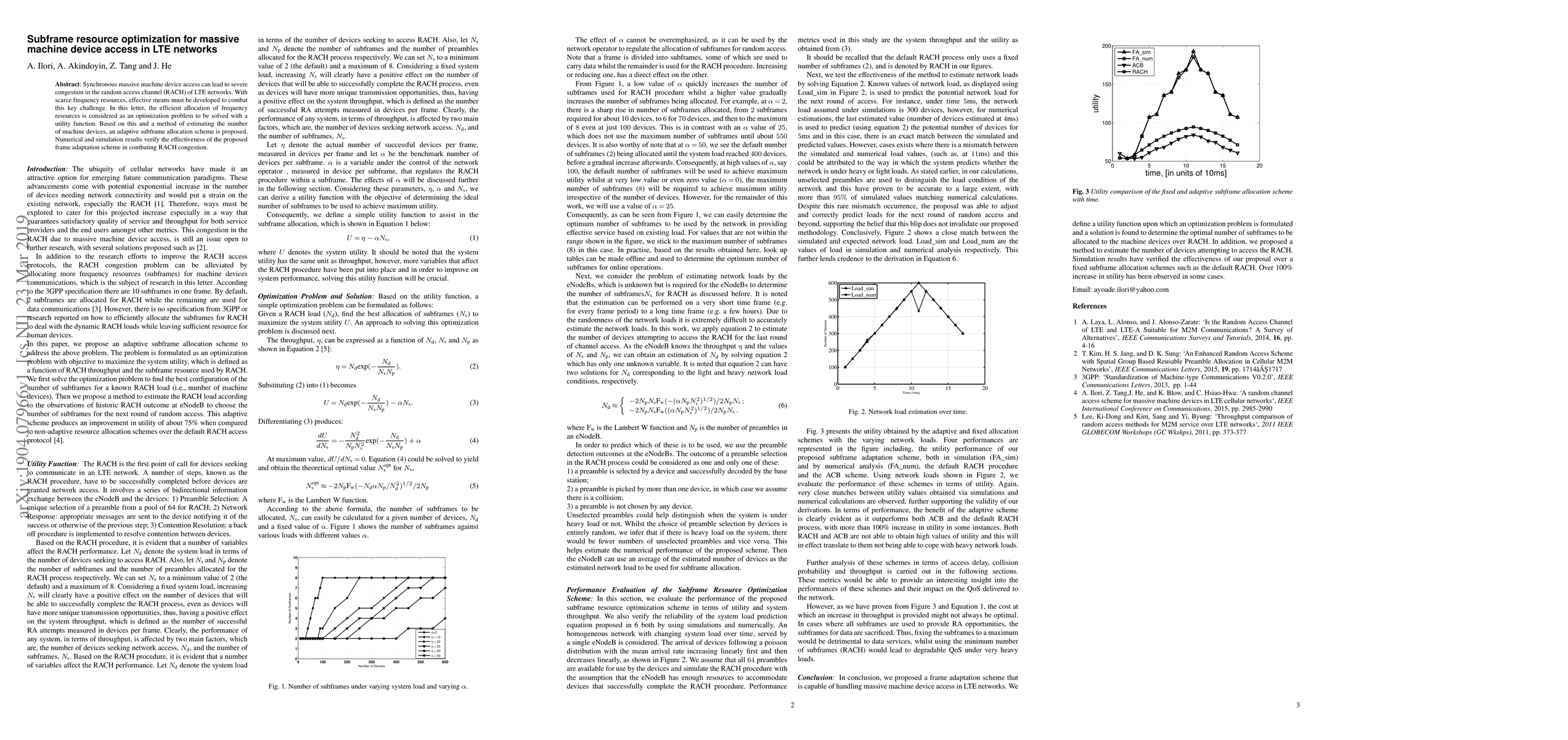 This research introduces an optimization-based approach to subframe resource allocation for massive machine device access in LTE networks, distinguishing itself from previous works that did not consider adaptive allocation strategies.